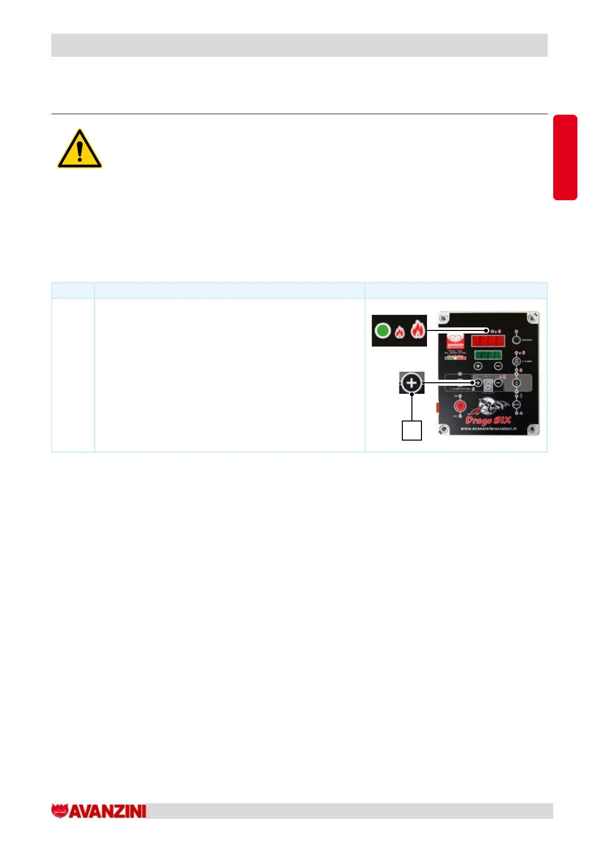 increase of 100°C-120°C per hour, check that the burner Drago Six, according to the size of the oven, mounts