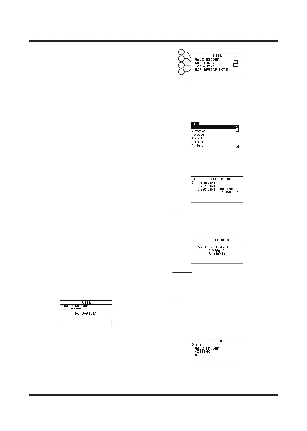 This menu is used to import or export sounds,