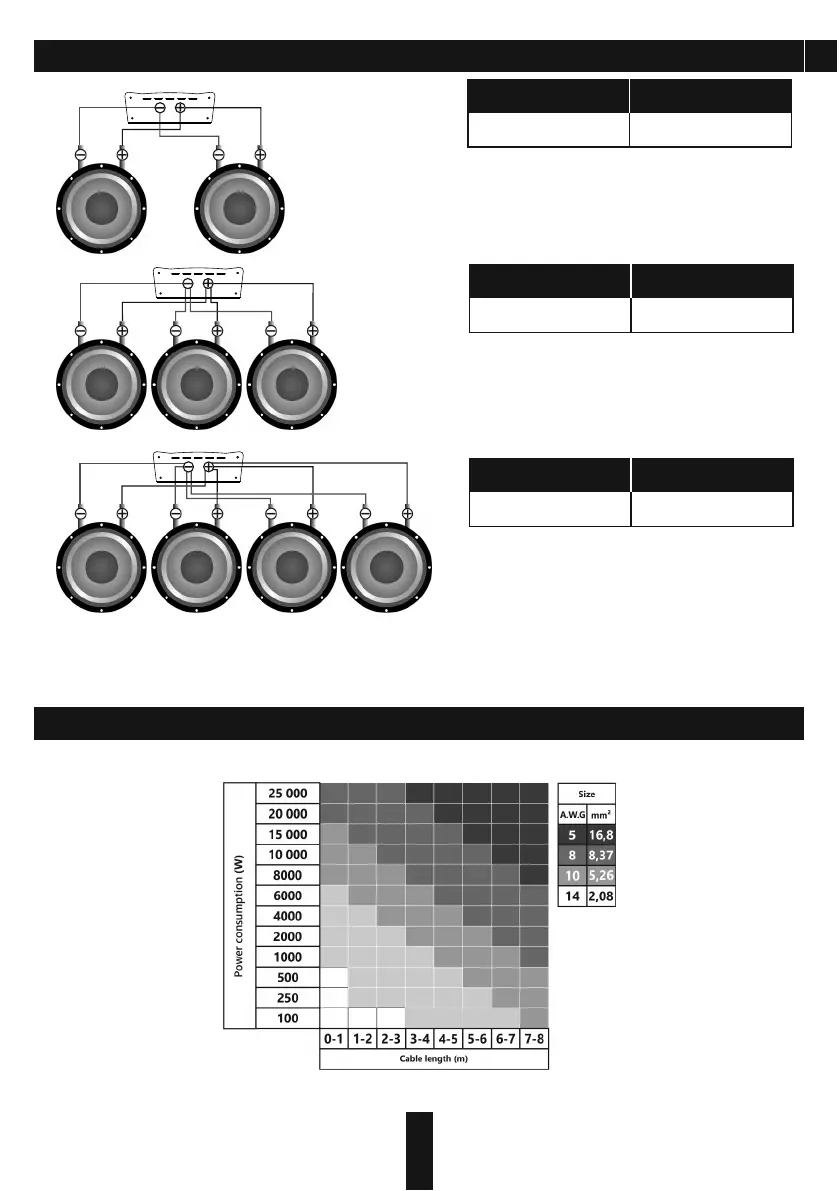 Avatar SST-12 - Parallel Wiring for Multiple Subwoofers; Speaker Cable Diameter Selection Guide