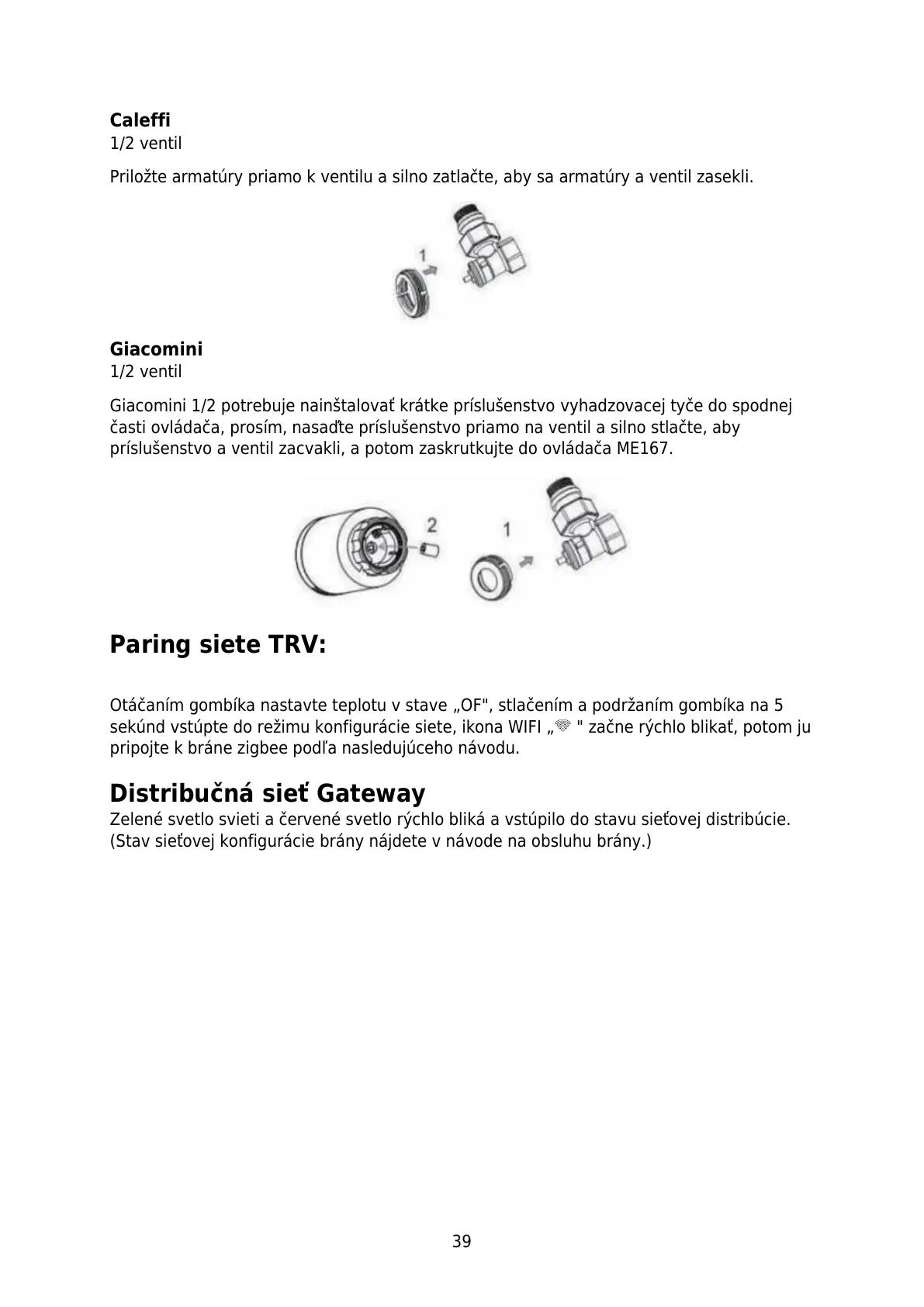 časti ovládača, prosím, nasaďte príslušenstvo priamo na ventil a silno stlačte, aby