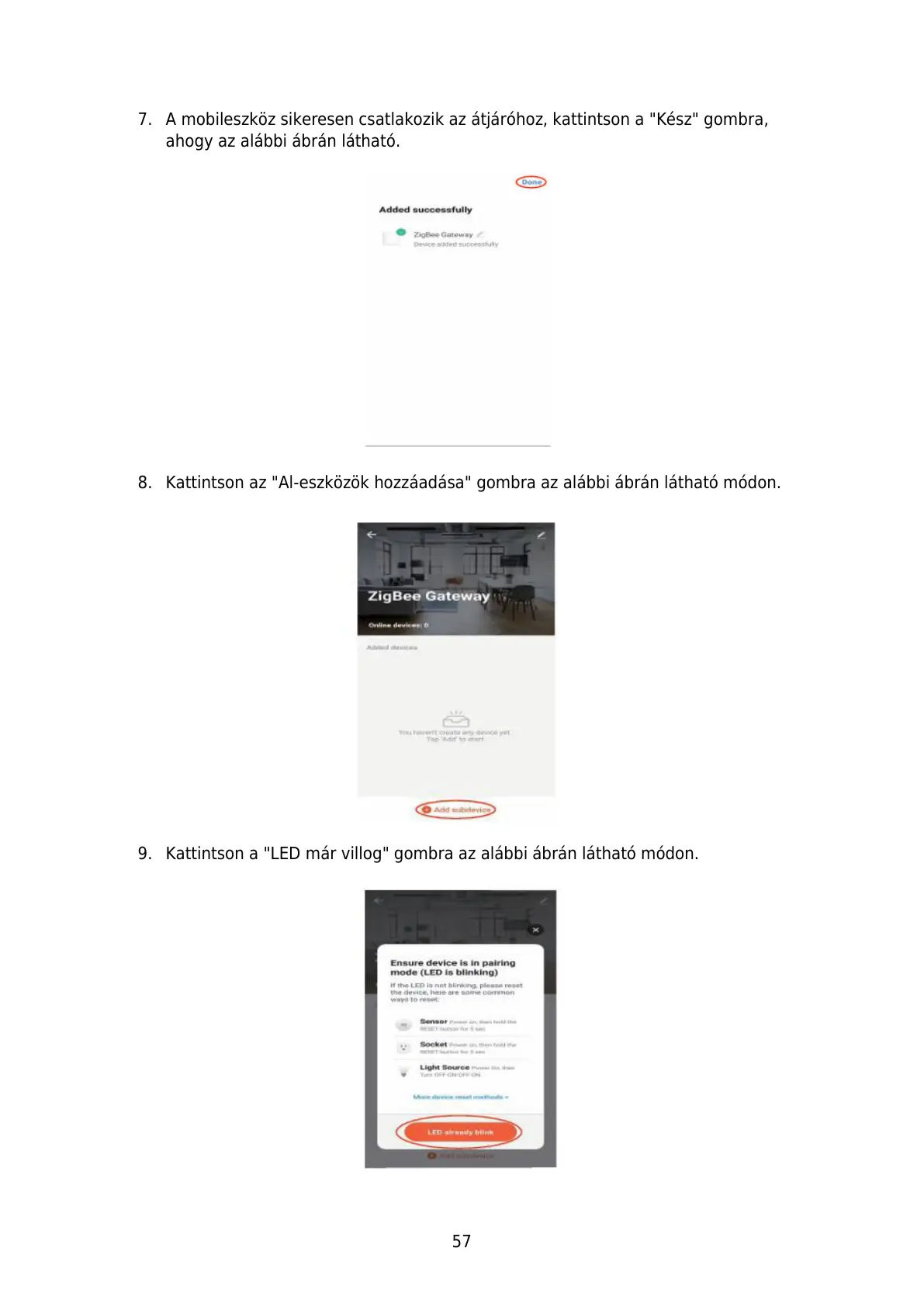 9. Kattintson a "LED már villog" gombra az abbi ábrán tható módon.