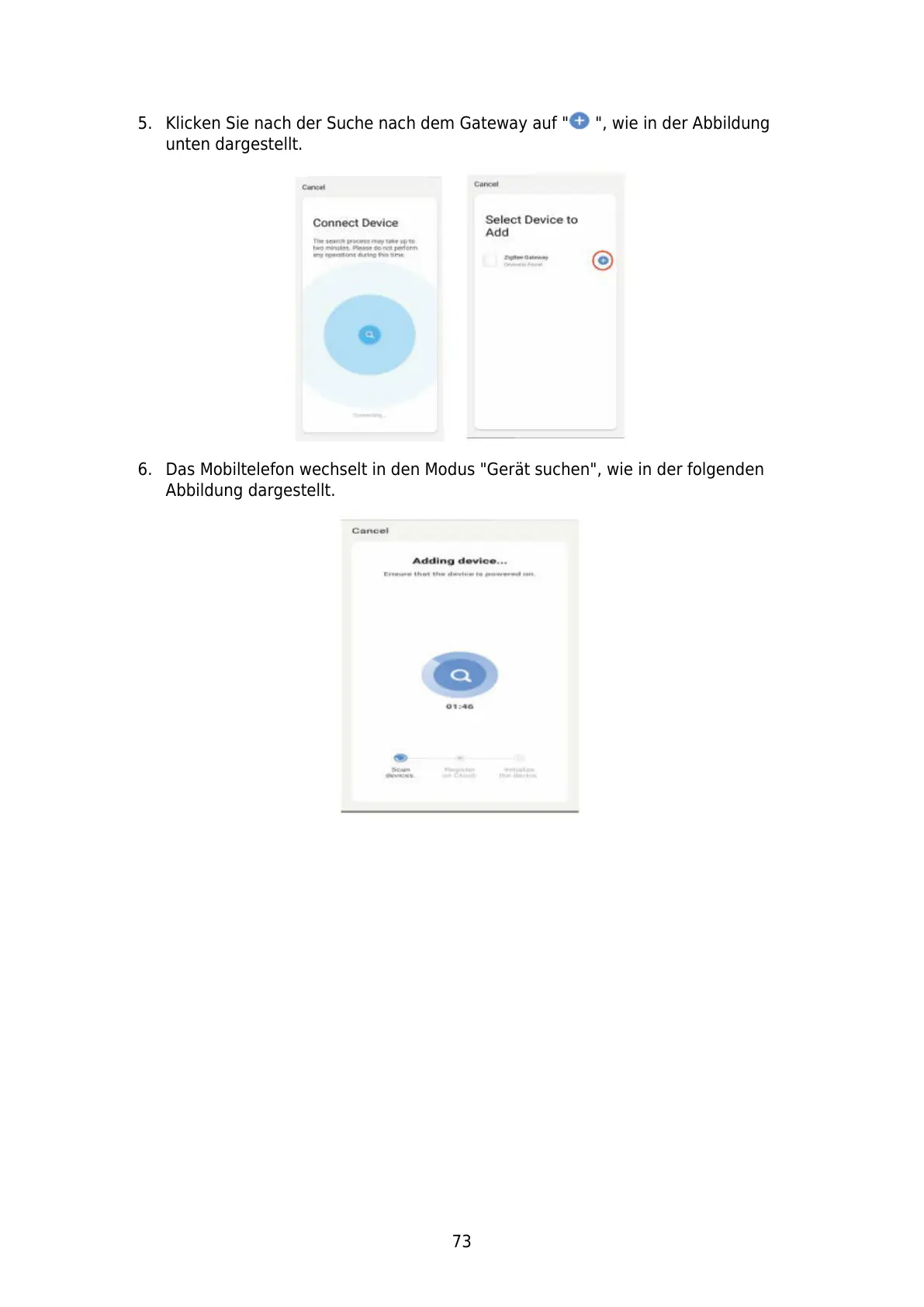 6. Das Mobiltelefon wechselt in den Modus "Gerät suchen", wie in der folgenden