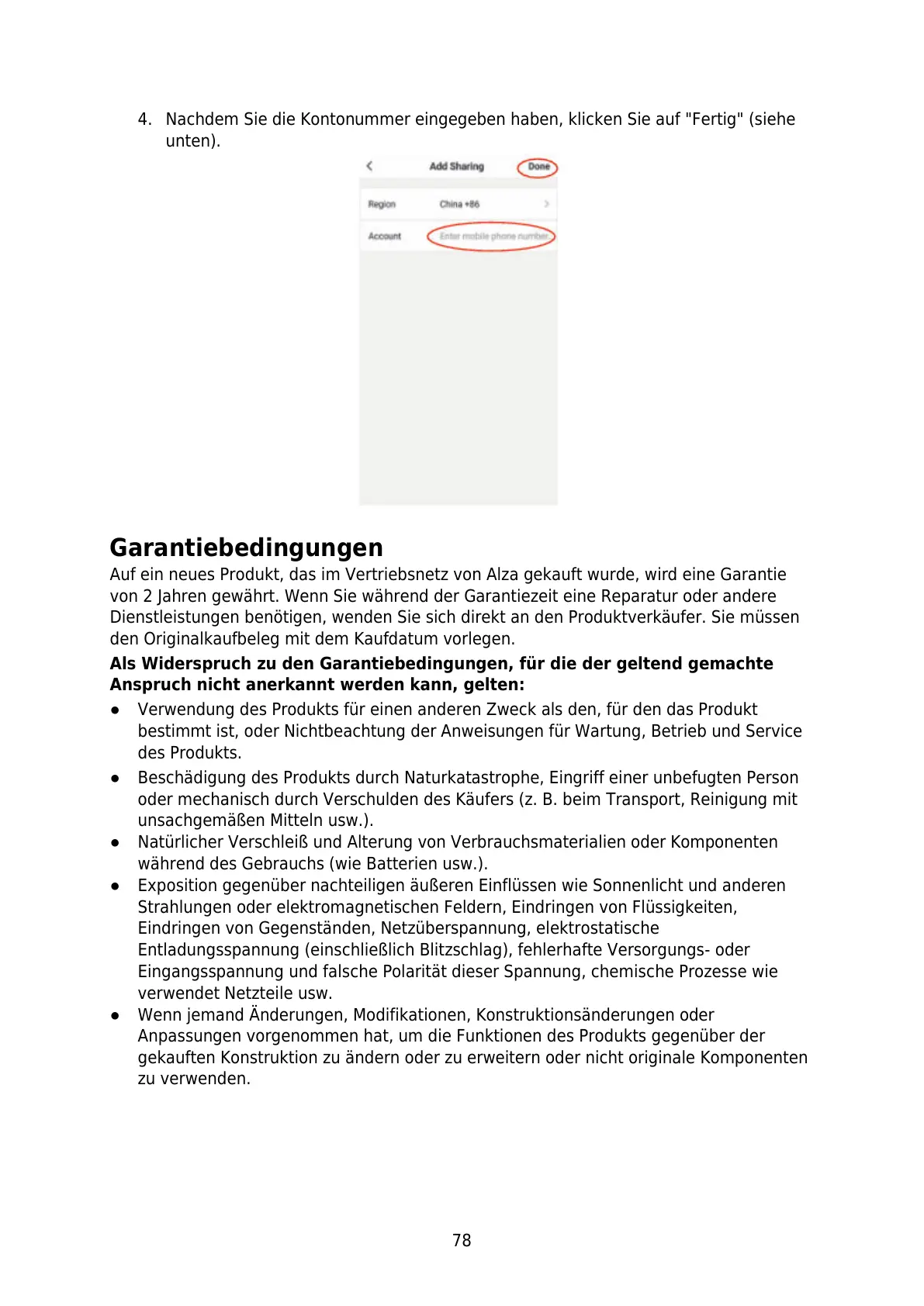 ● Beschädigung des Produkts durch Naturkatastrophe, Eingriff einer unbefugten Person