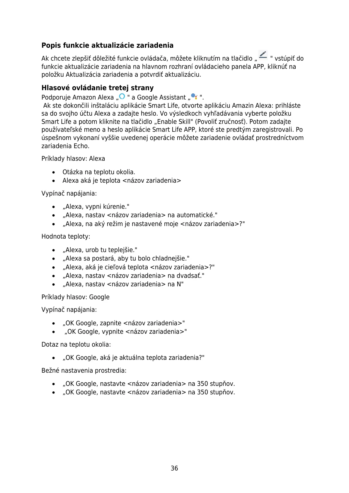 Podporuje Amazon Alexa „ " a Google Assistant „ ".