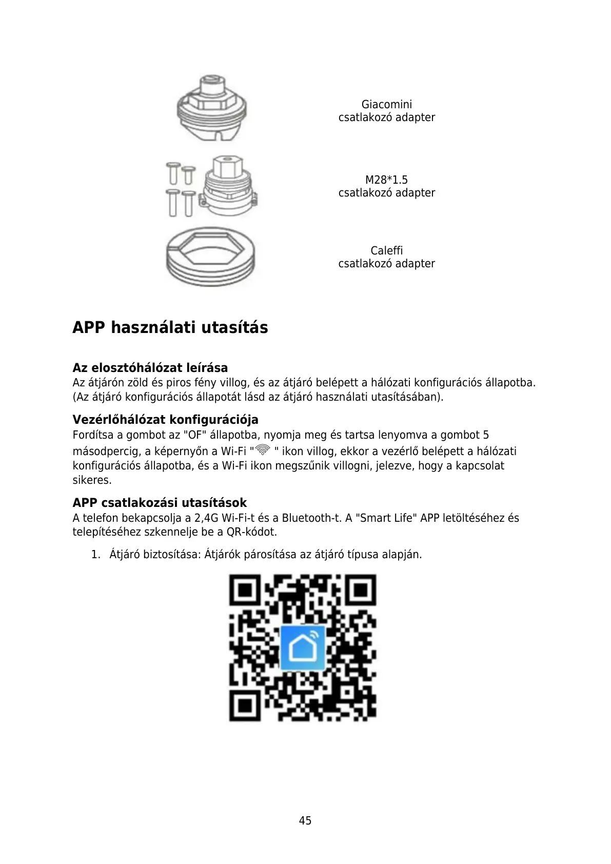 A telefon bekapcsolja a 2,4G Wi-Fi-t és a Bluetooth-t. A "Smart Life" APP letöltéséhez és