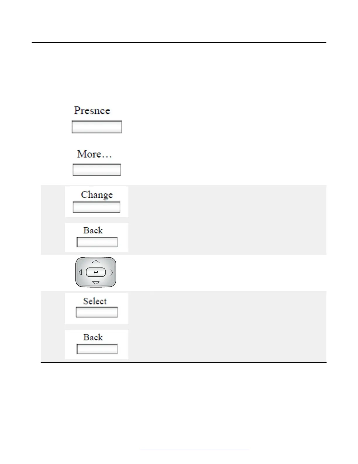 1. Press the Presnce context-sensitive soft key (press the