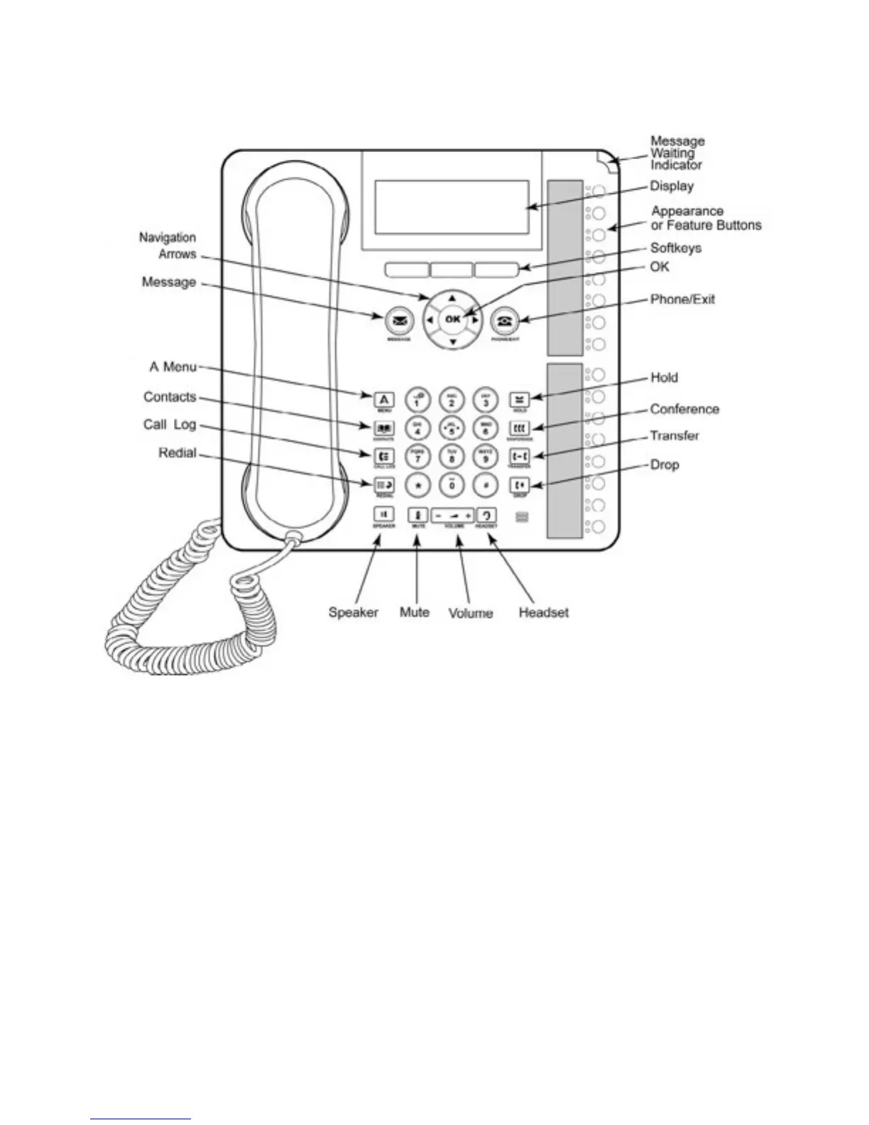 Avaya 1416 - Phone Diagram and Key Identification