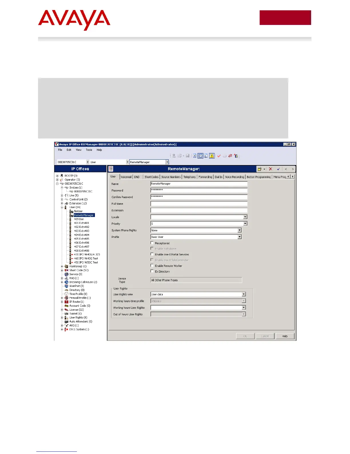 Log into the Avaya IP Office Manager PC: