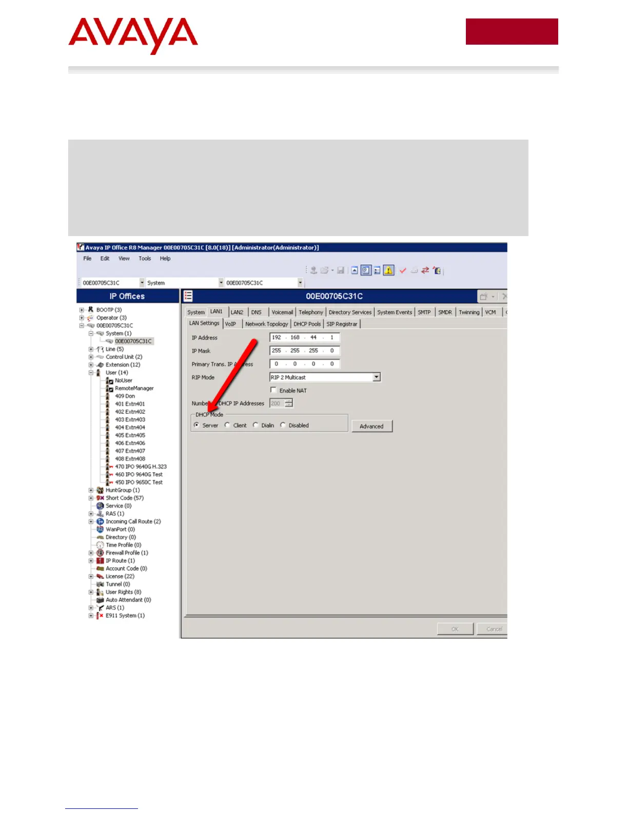 Use this procedure to verify that the DHCP Server on Avaya IP Office is enabled.