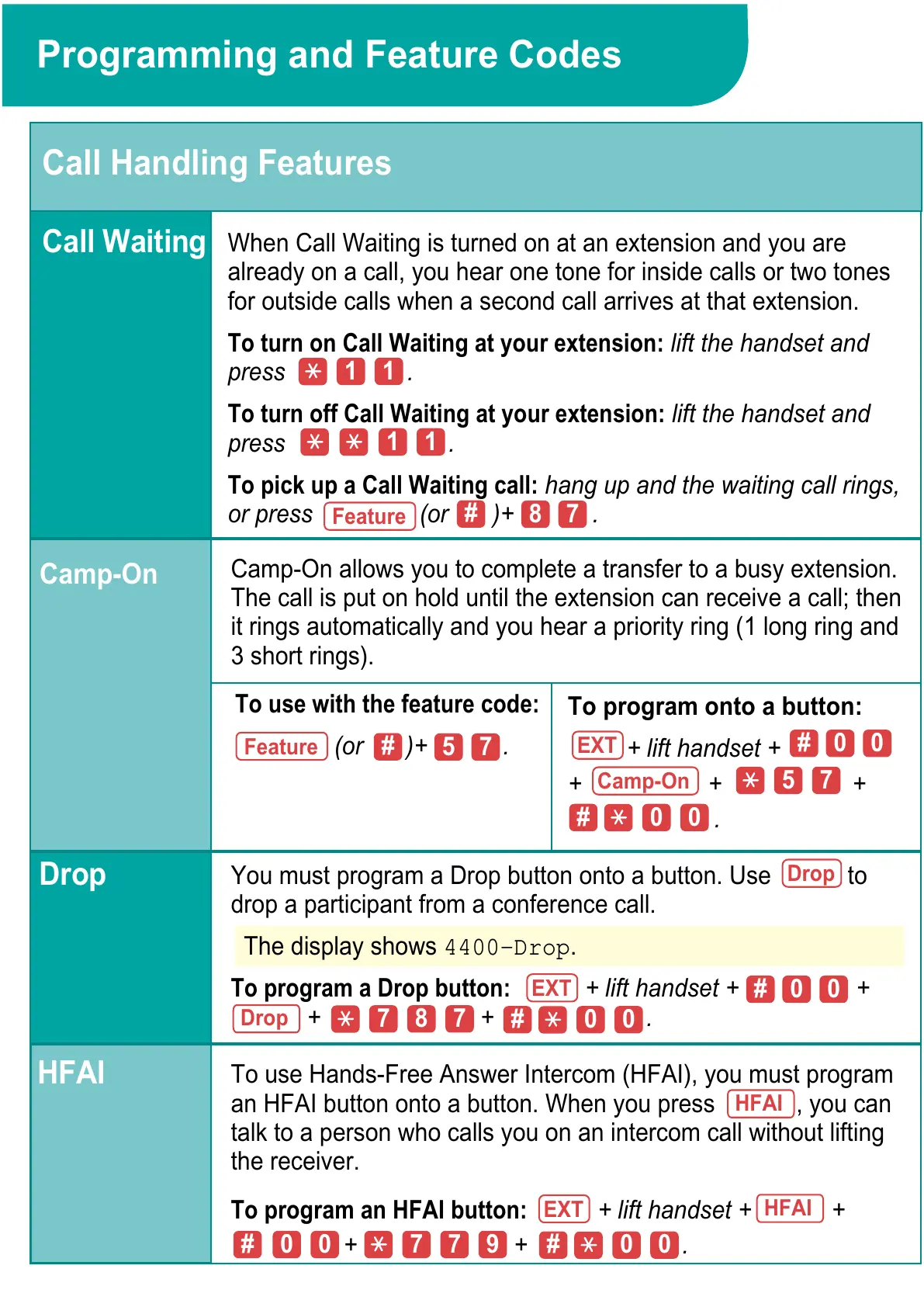 Programming and Feature Codes