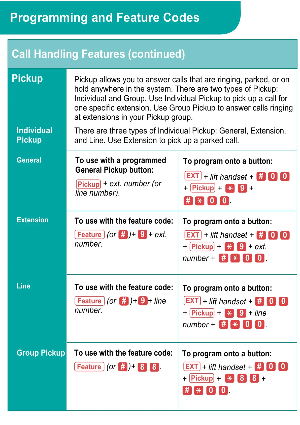 General Pickup button: