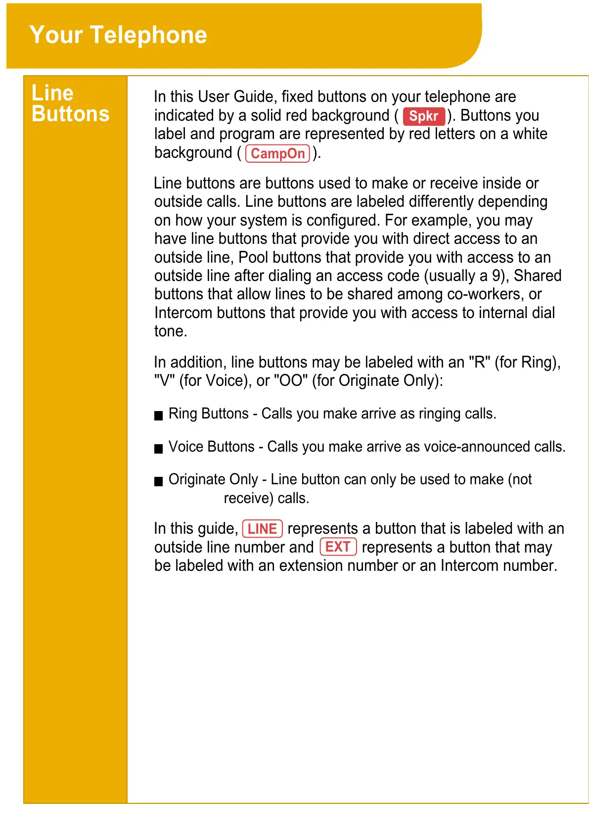 In addition, line buttons may be labeled with an "R" (for Ring),