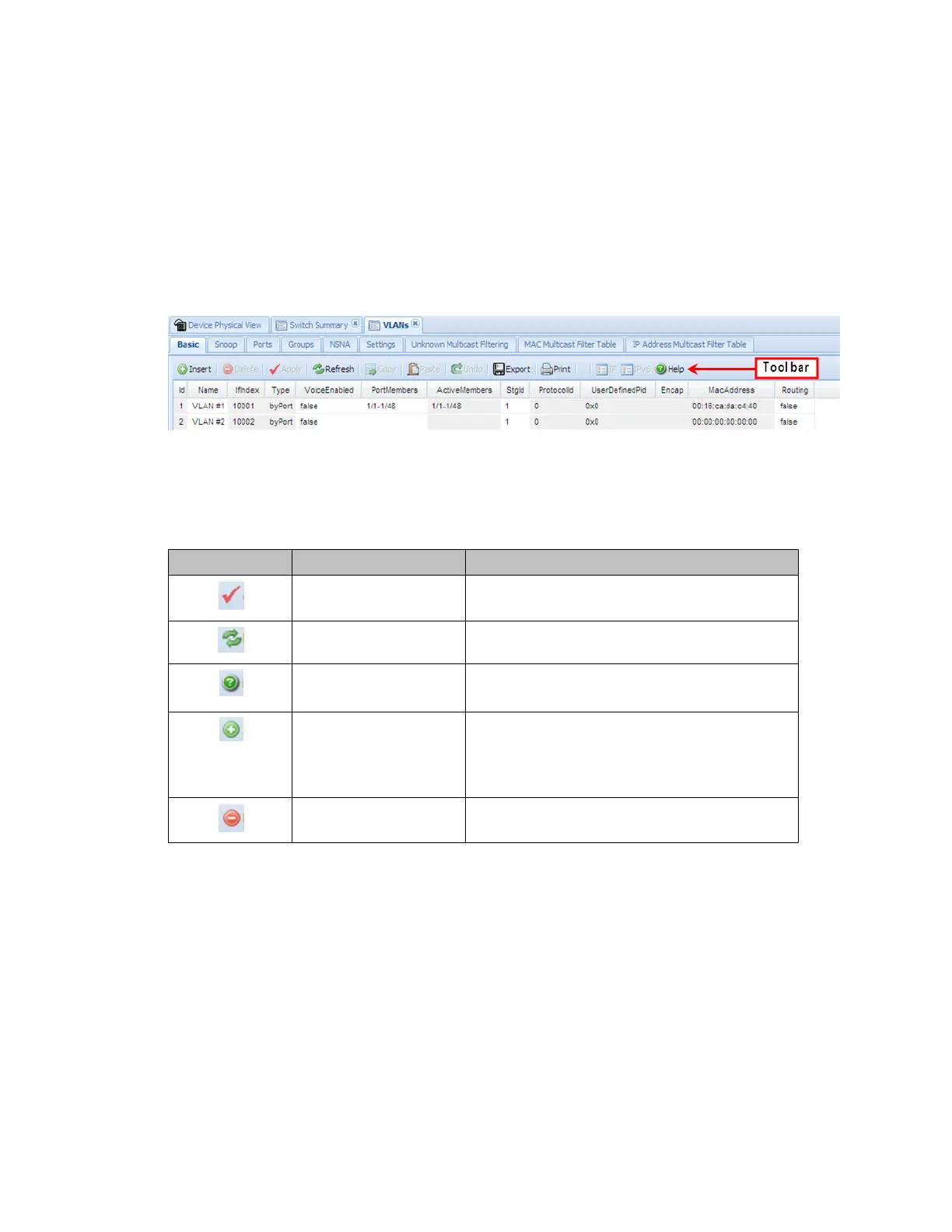 area to view and configure switch parameters from the dialog boxes that appear in the work
