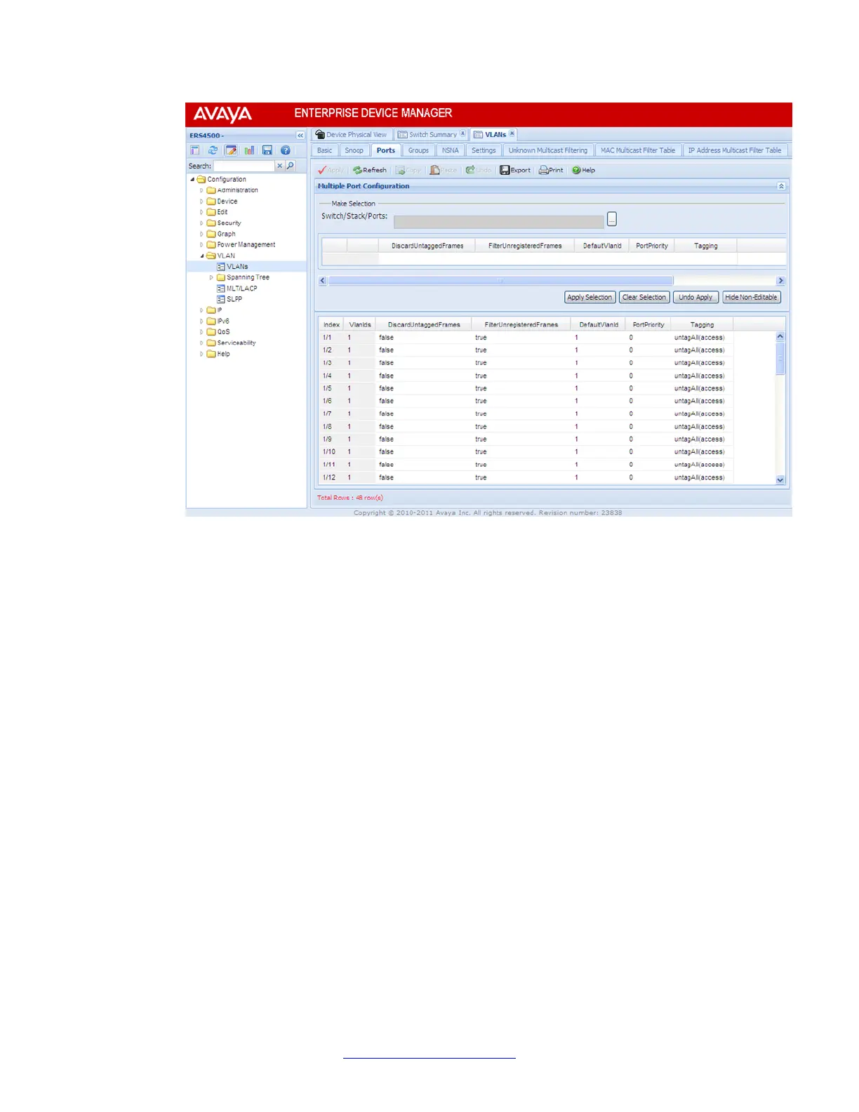 • In the Device Physical View, hold down the Ctrl key and click the ports you want to
