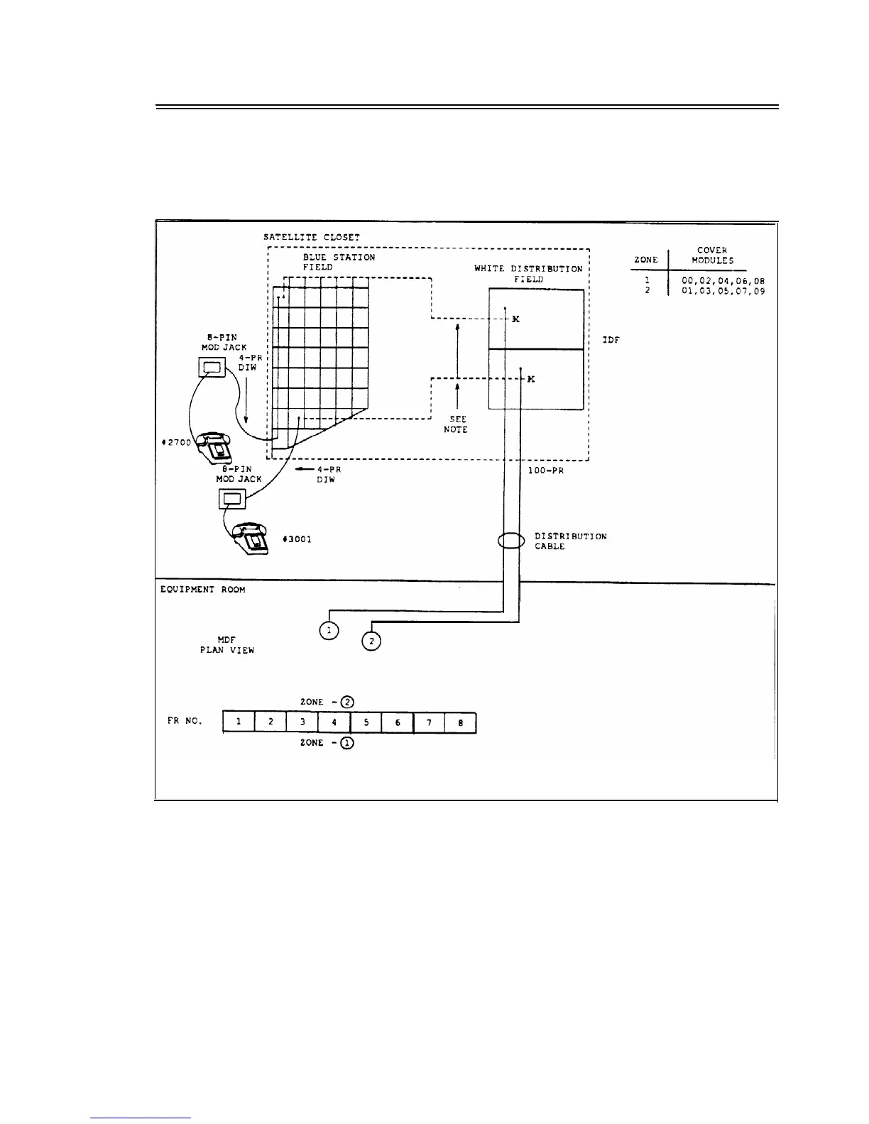 NOTE: If station #2700 is located in module 04, the cross-connection in the closet goes to a pair in zone 1. Similarly, if #3001 is in module