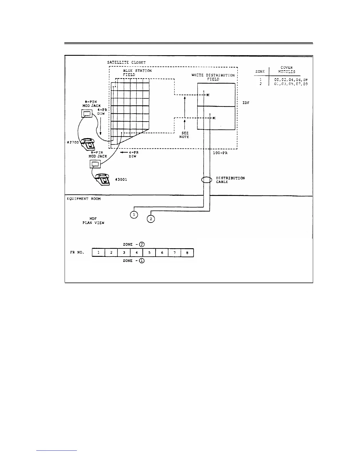 If station #2700 is located in module 04, the cross-connection in the closet goes to a pair in zone 1. Similarly, if #3001 is in module