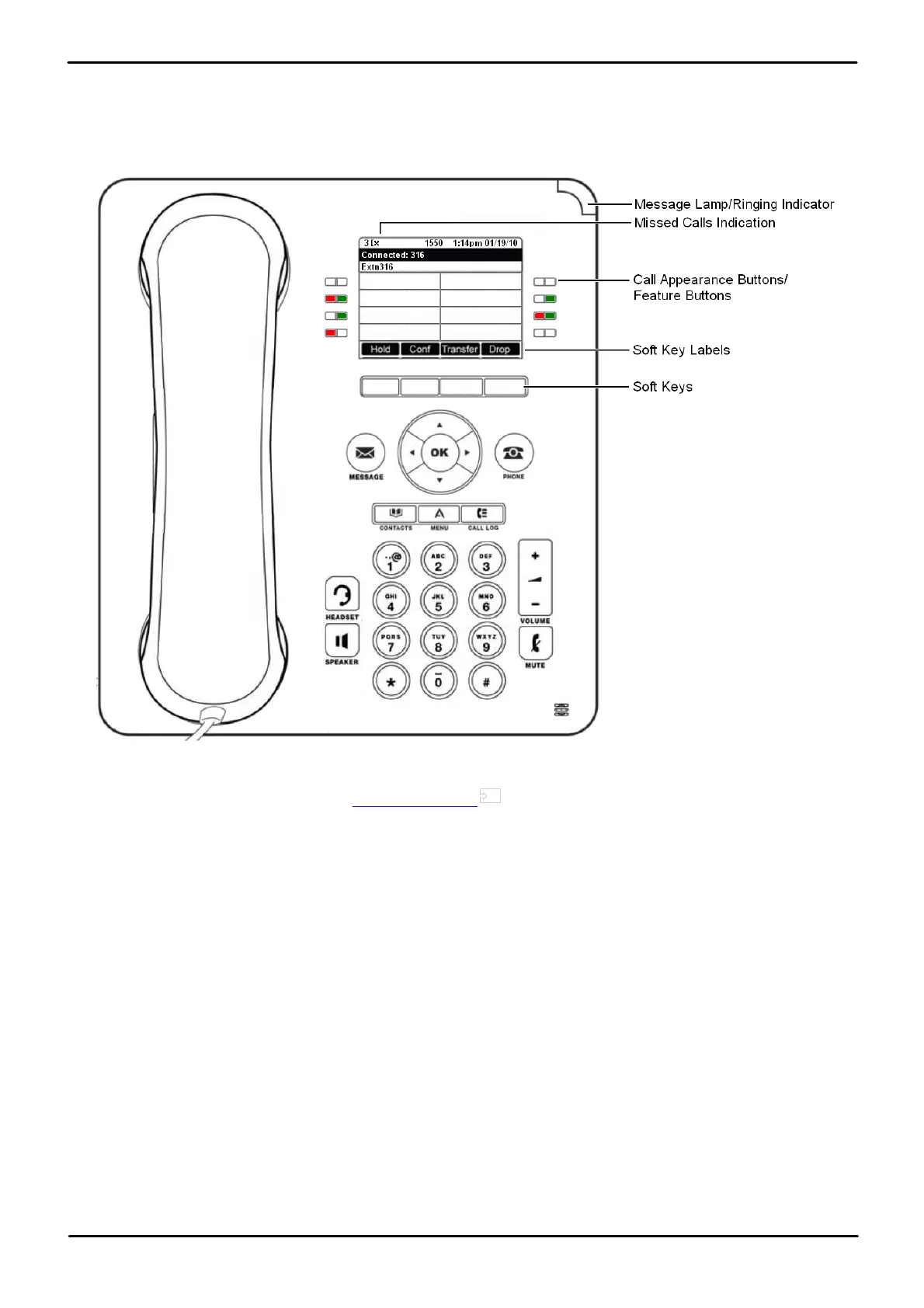 This phone supports 24 programmable call appearance/feature buttons. The labels for these buttons are visible on the