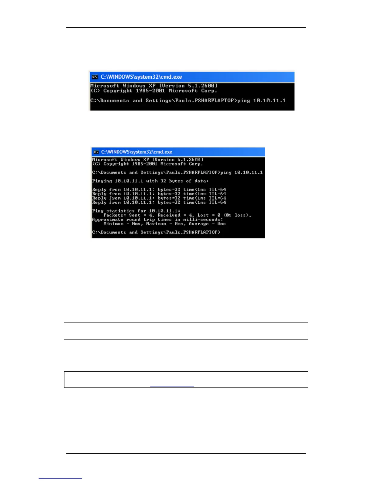 3. Type ping followed by the default IP Address of the LAN port you are