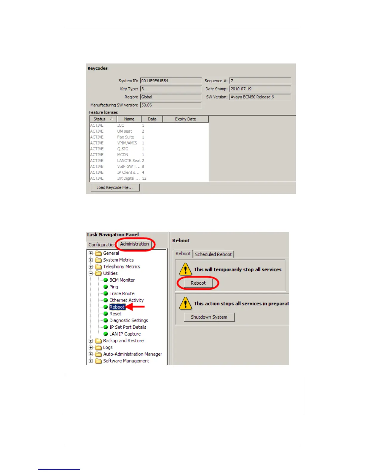select the Administration tab followed by Utilities, Reboot and then