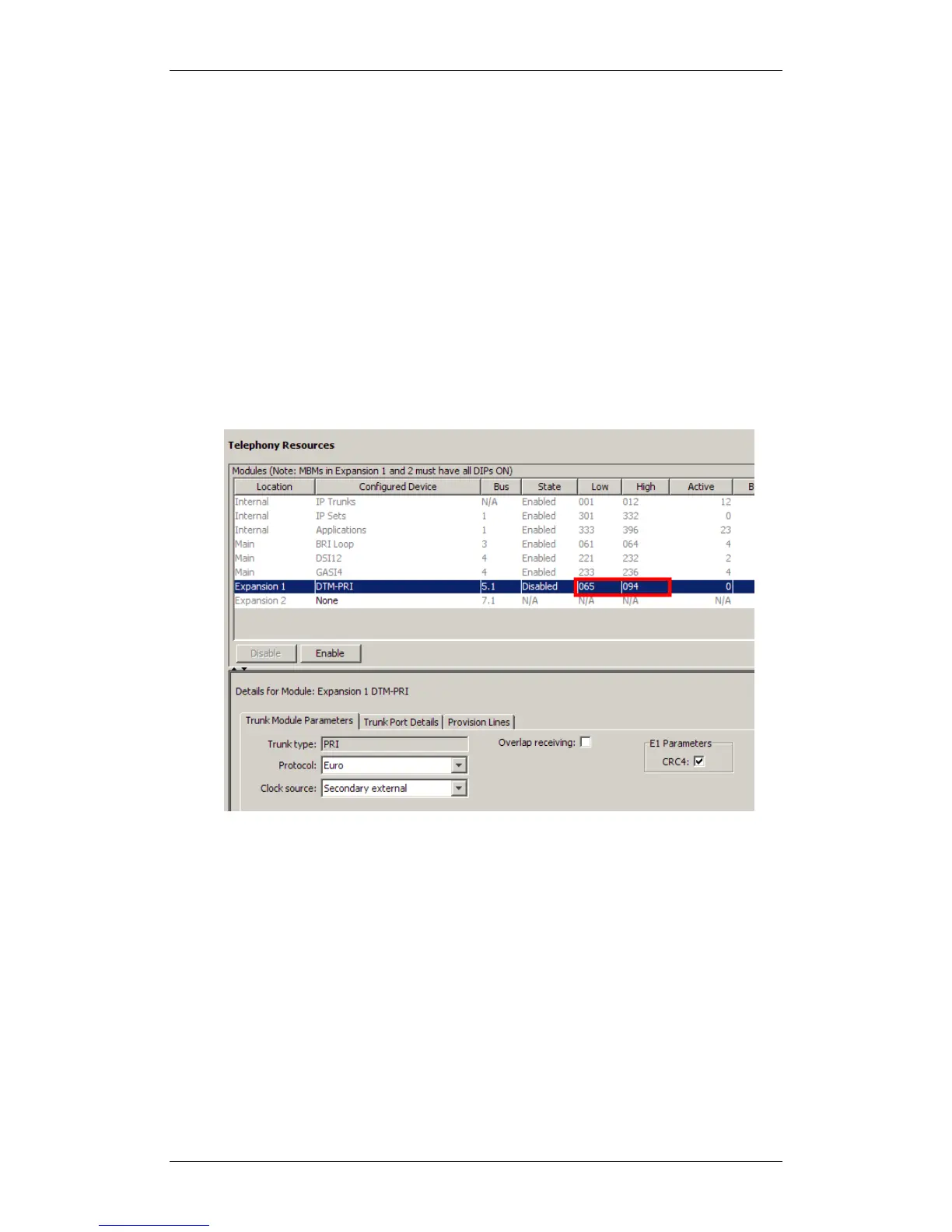 secondary) clock sources and that any remaining DTMs/BRIs be set to