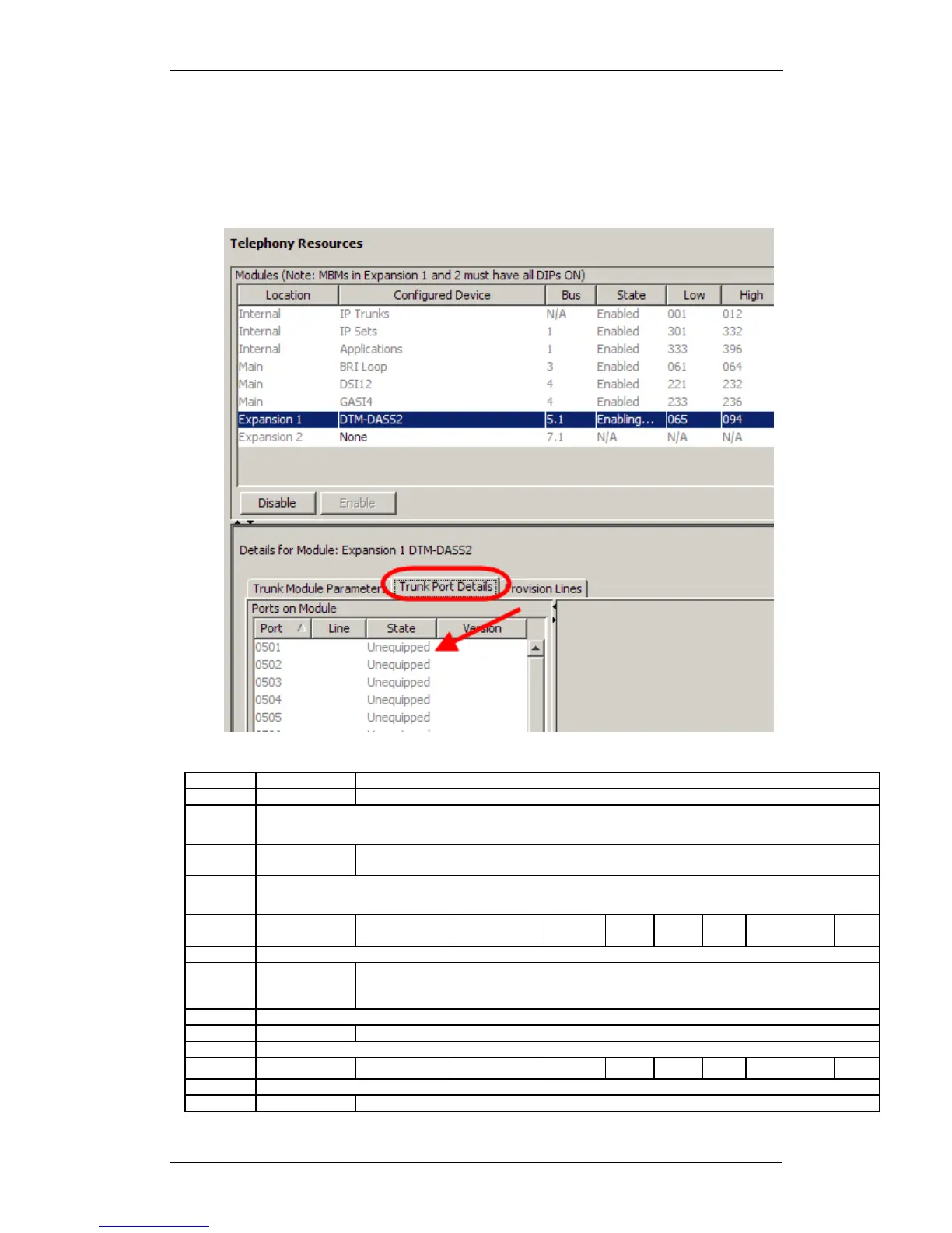 Trunk Port Details tab