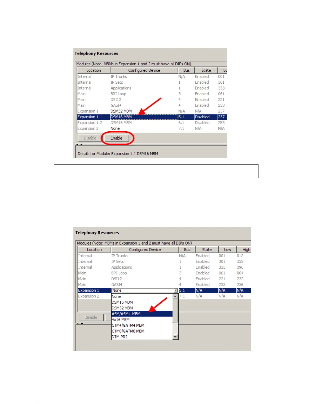 Note: For the DSM32 MBM both Expansion 1.1 and Expansion 1.2 should be