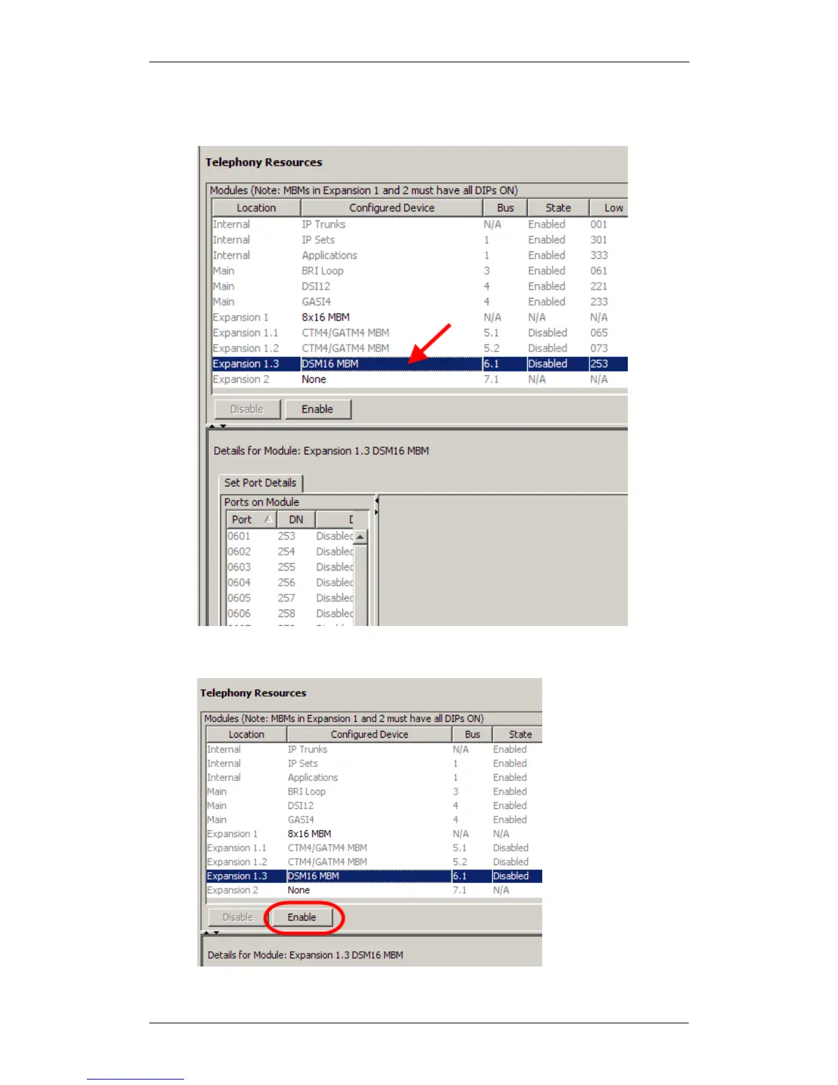 4. Once configured, each bus should be Enabled.