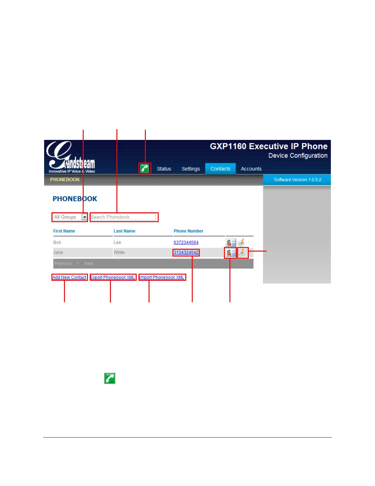 Figure 3: E129 SIP DESKPHONE Web GUI - Contacts