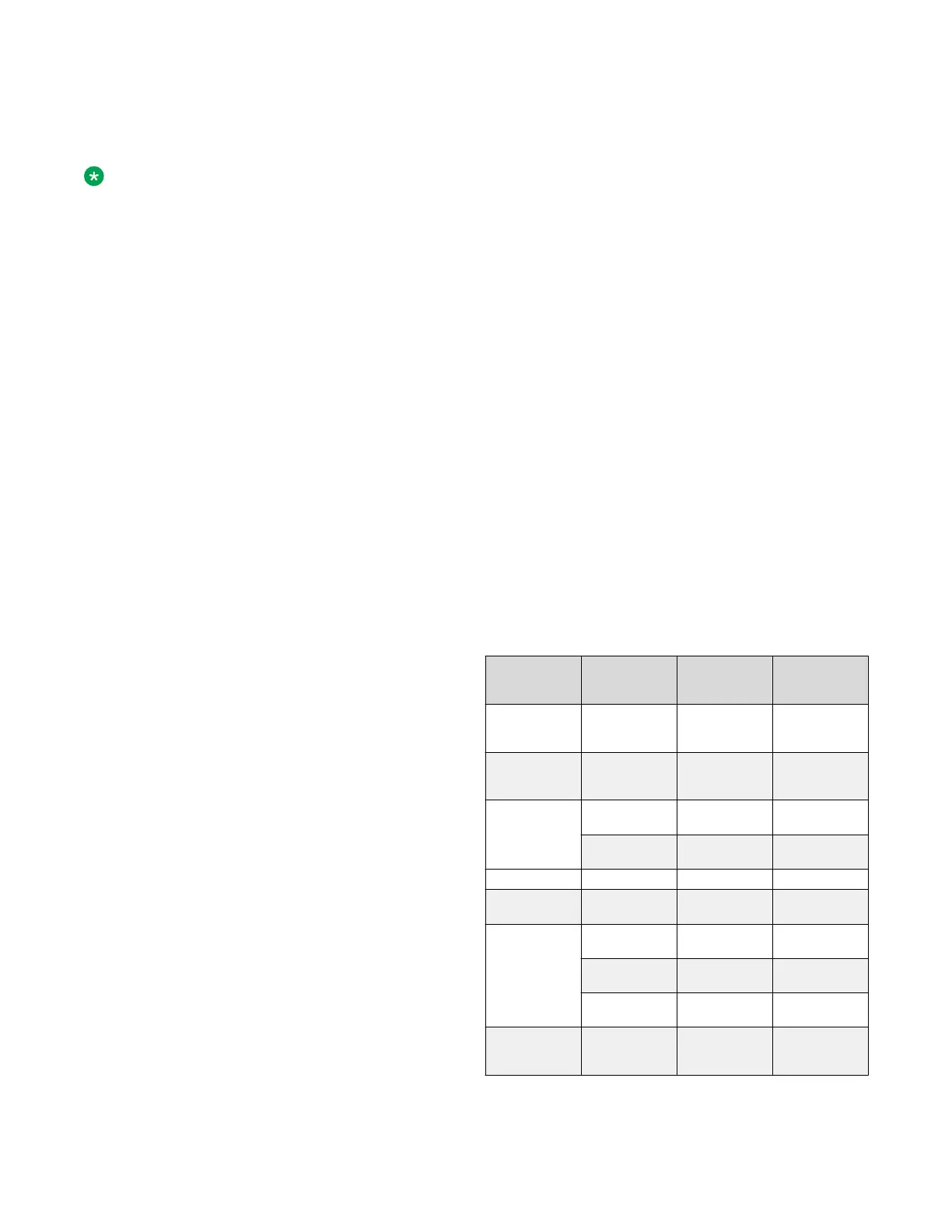 the following table:
