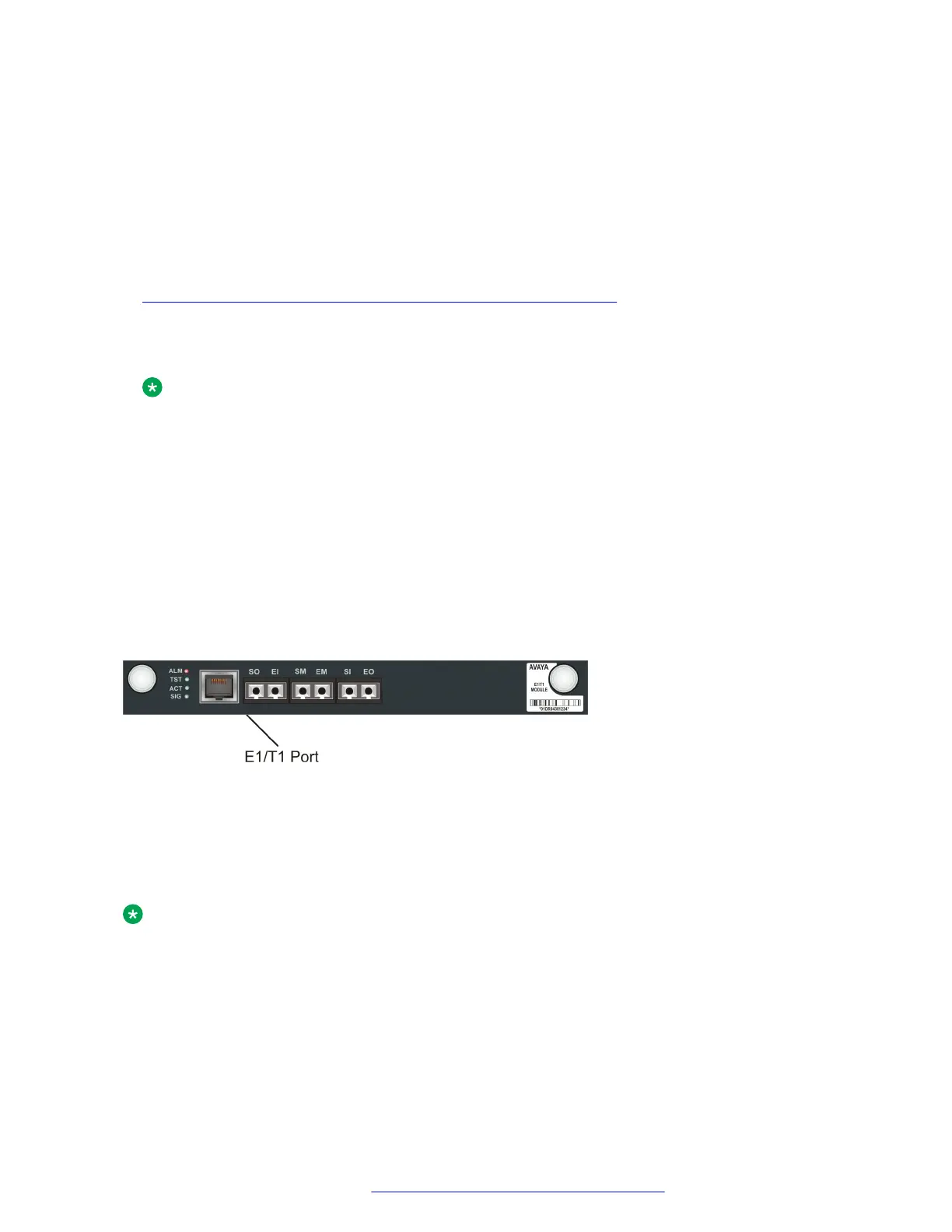 Connect the trunk cable to the E1/T1 port on an MM710 or MM710B media module. The SIG LED