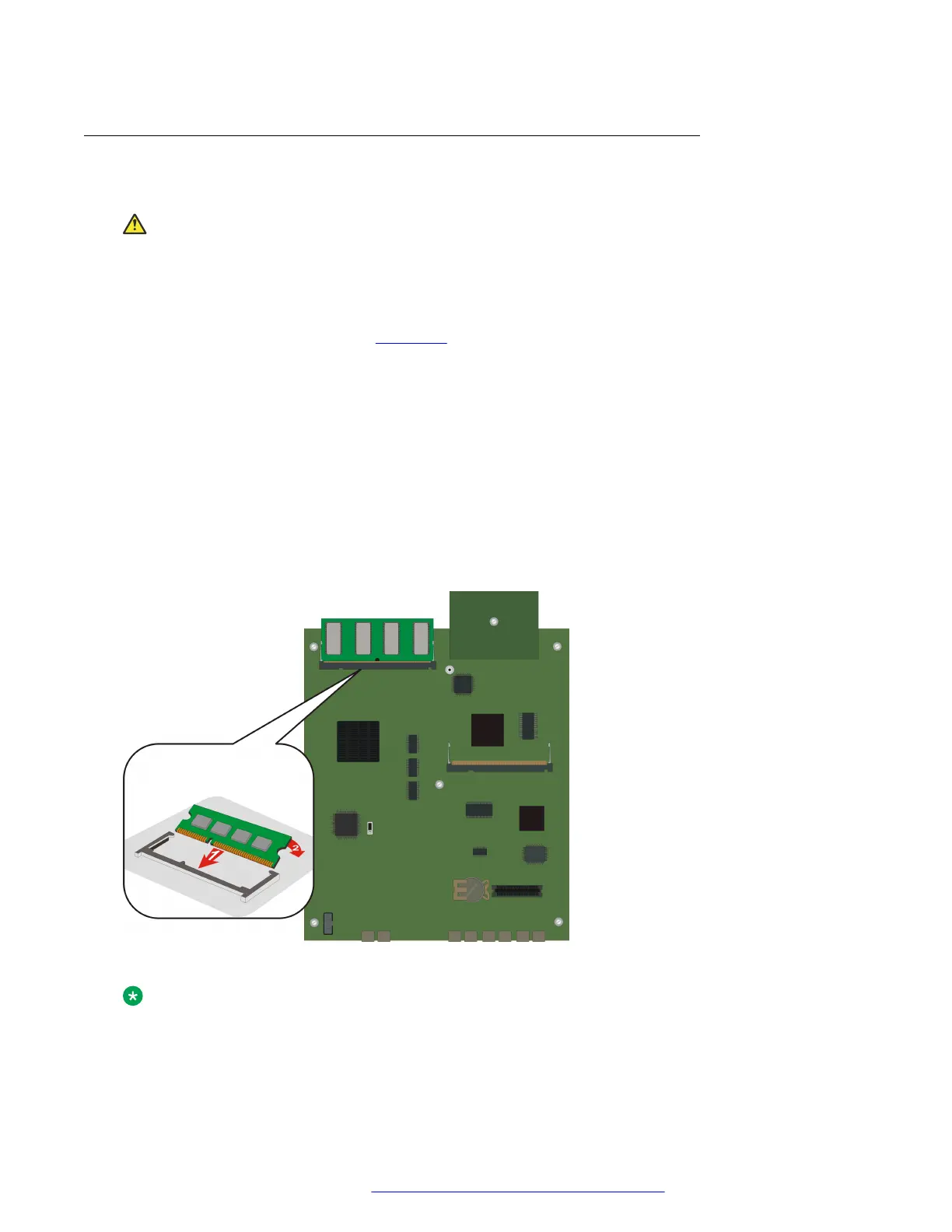 4. Insert the 512 RAM card provided in the kit into the RAM slot, and push in all the way.