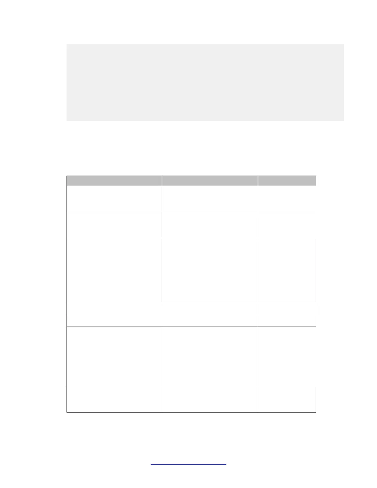 Parameter Possible values Actual value