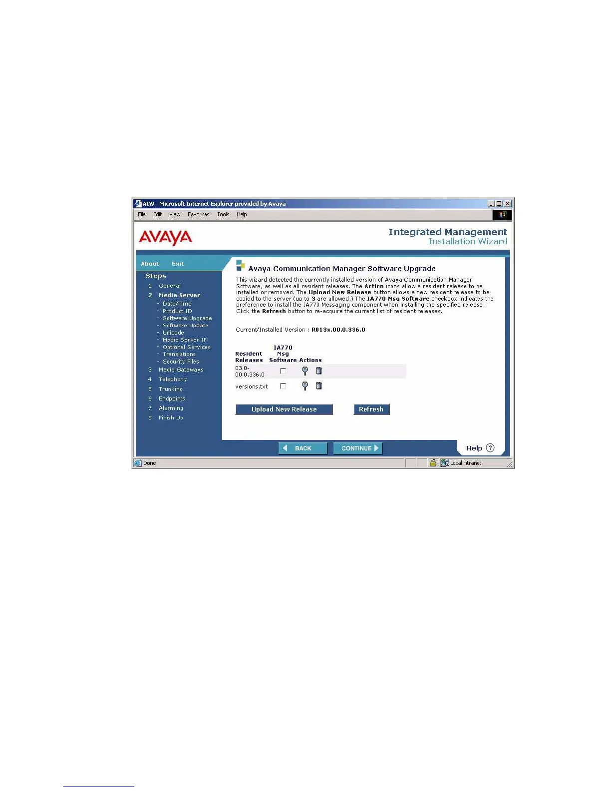 ● Software Upgrade - install a version of Communication Manager, either a new version, an