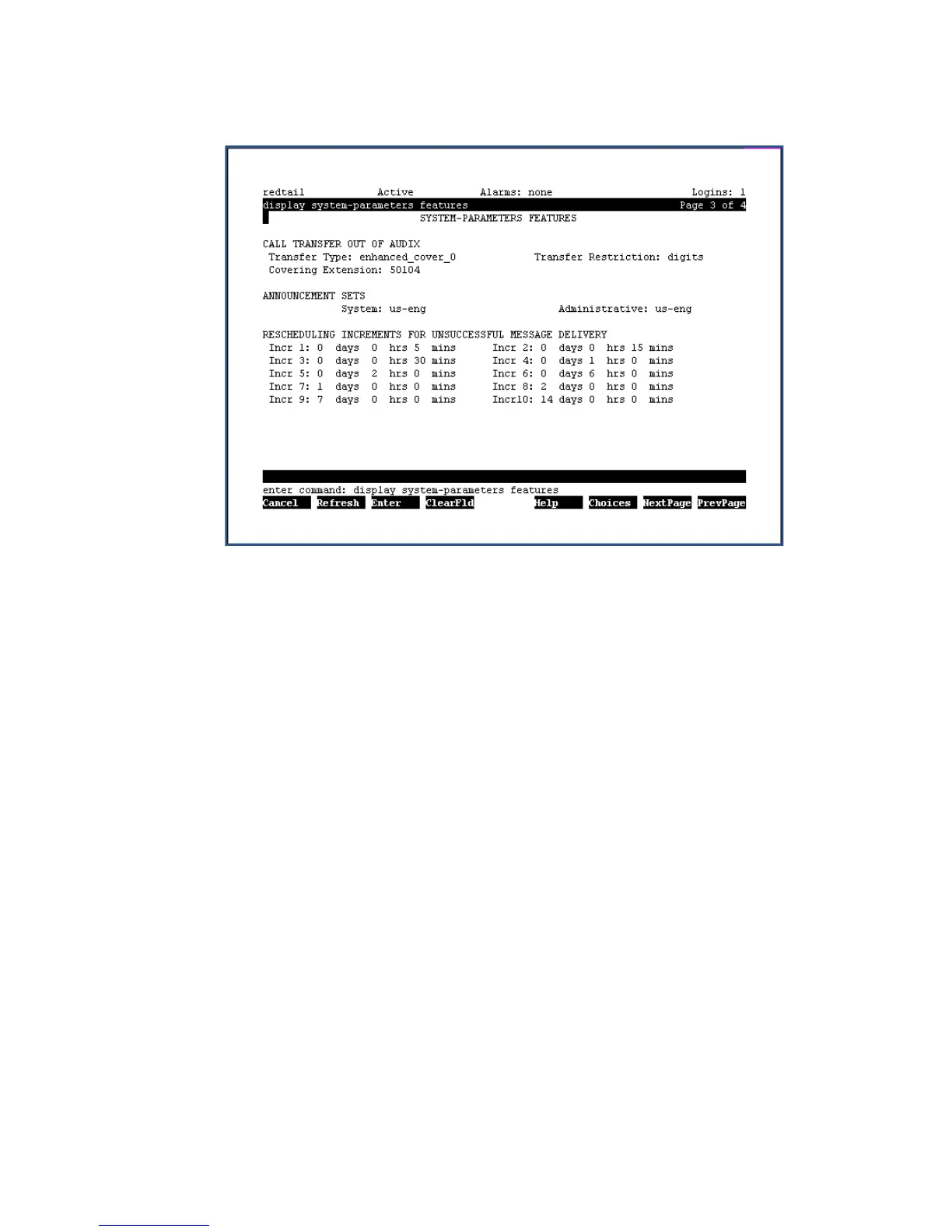 System-Parameters Features screen