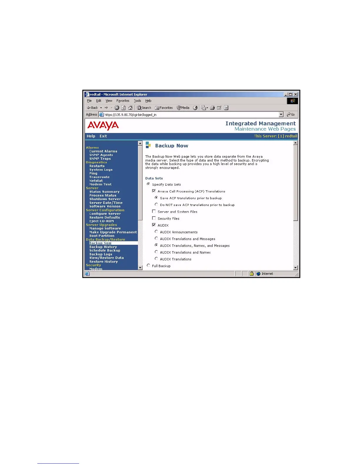 1. On the Maintenance Web Interface under Data Backup/Restore, click Backup Now.
