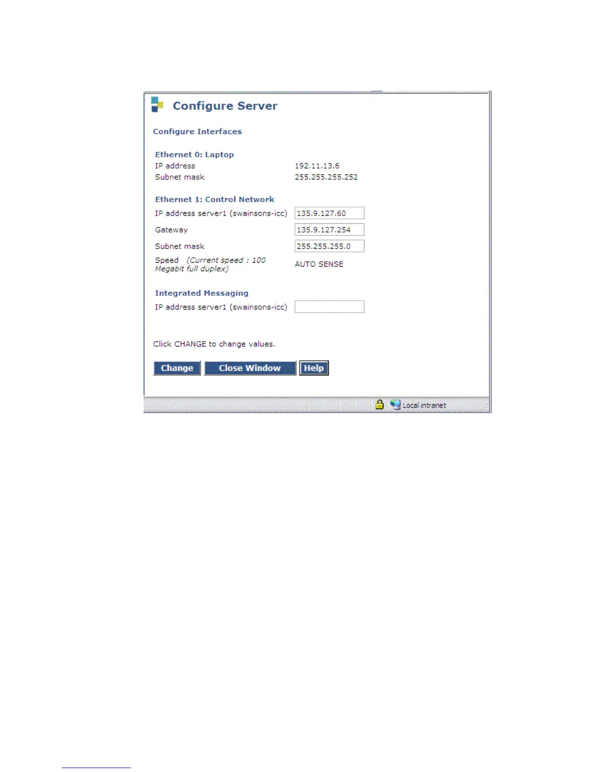 ethernet interfaces. Click Close Window.