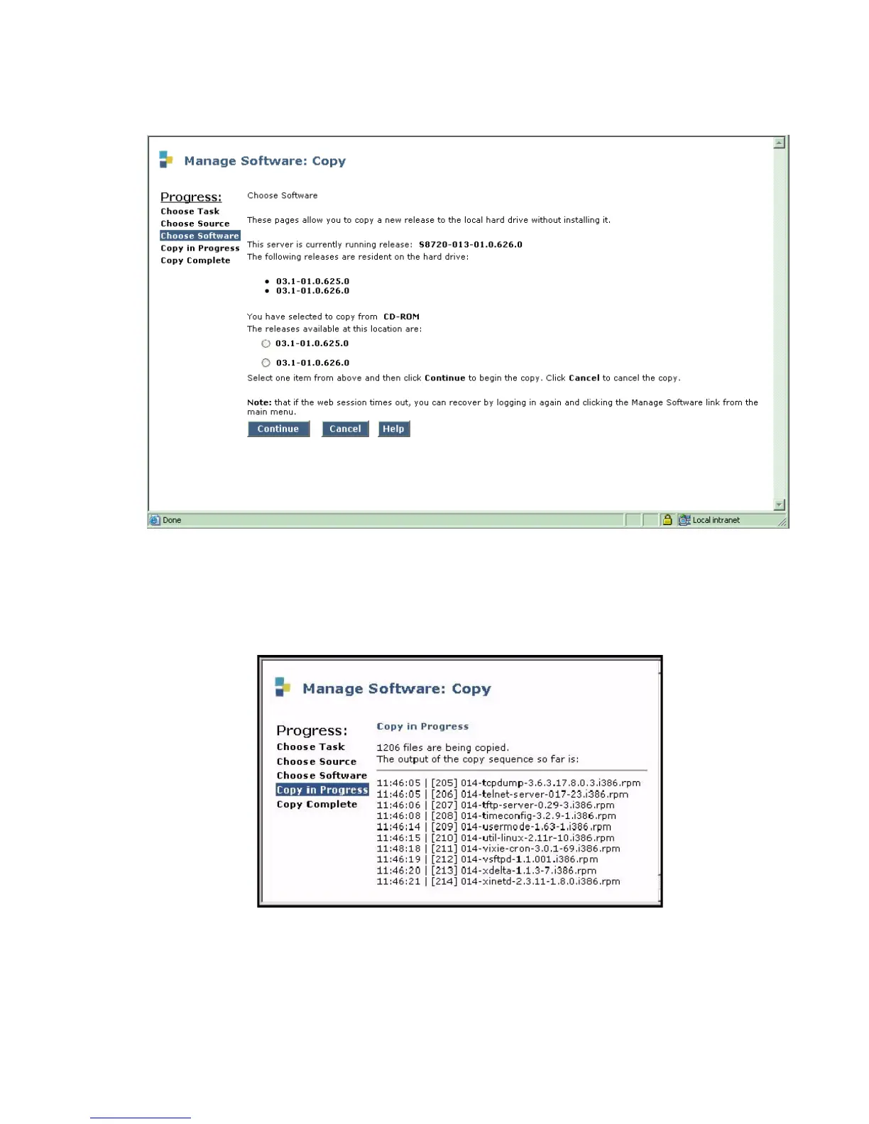 7. Select the release to be copied and click Continue. The Copy in Progress screen