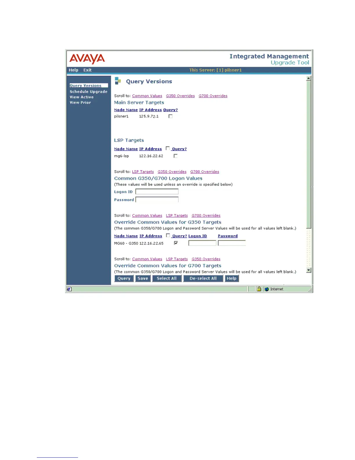 8. Enter data for the G700 Media Gateways you want to query.