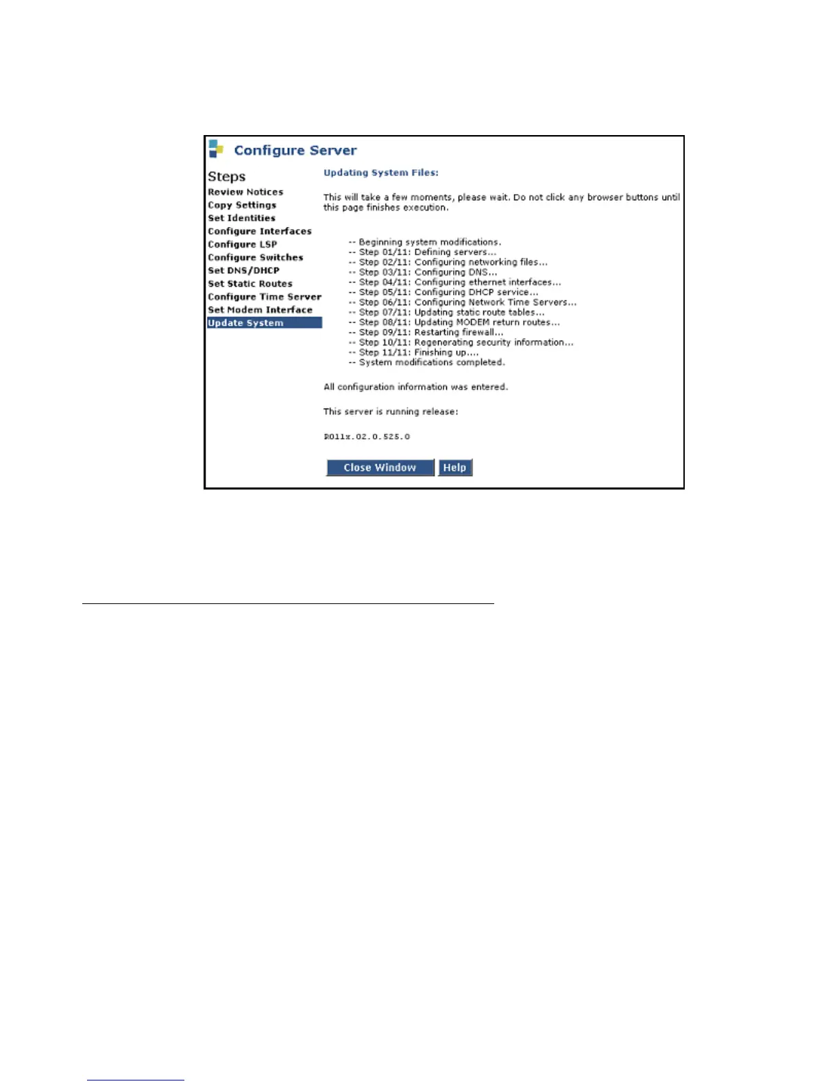 28. Click Close Window and continue the configuration of the G700 Media Gateway on the