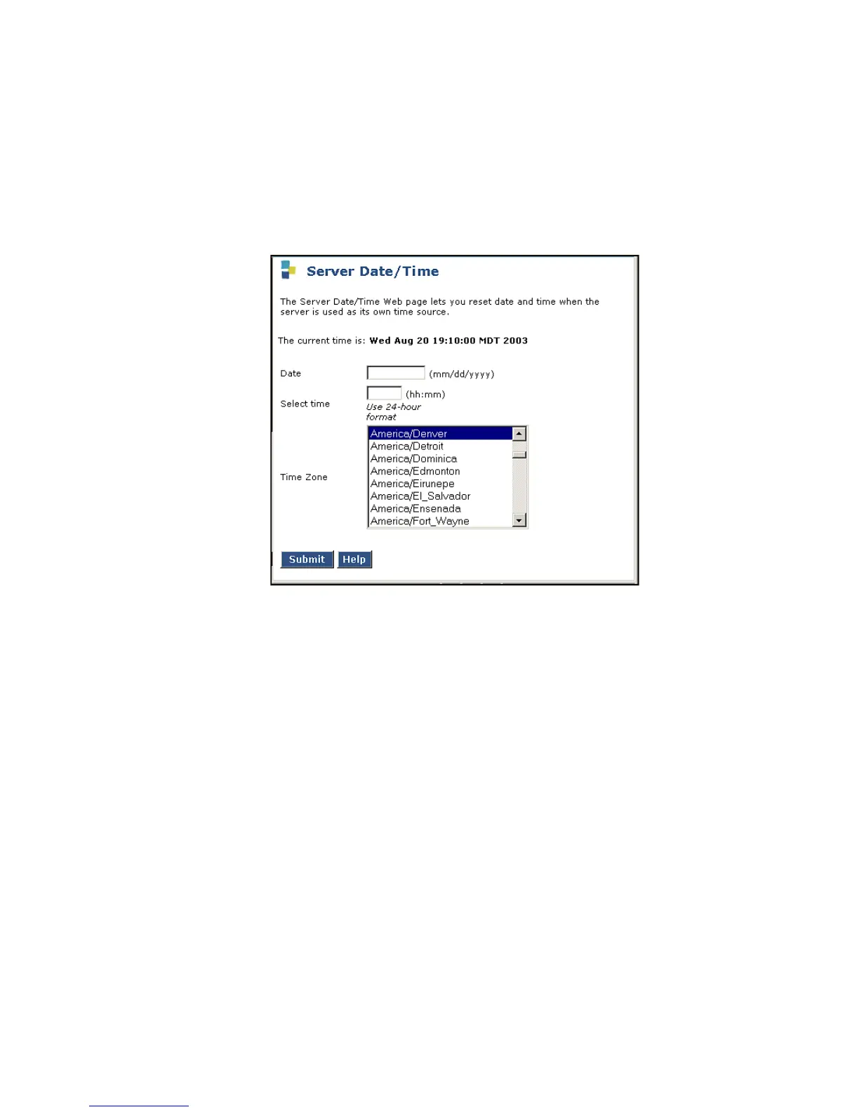 1. In the main menu under Server, click Server Date/Time.