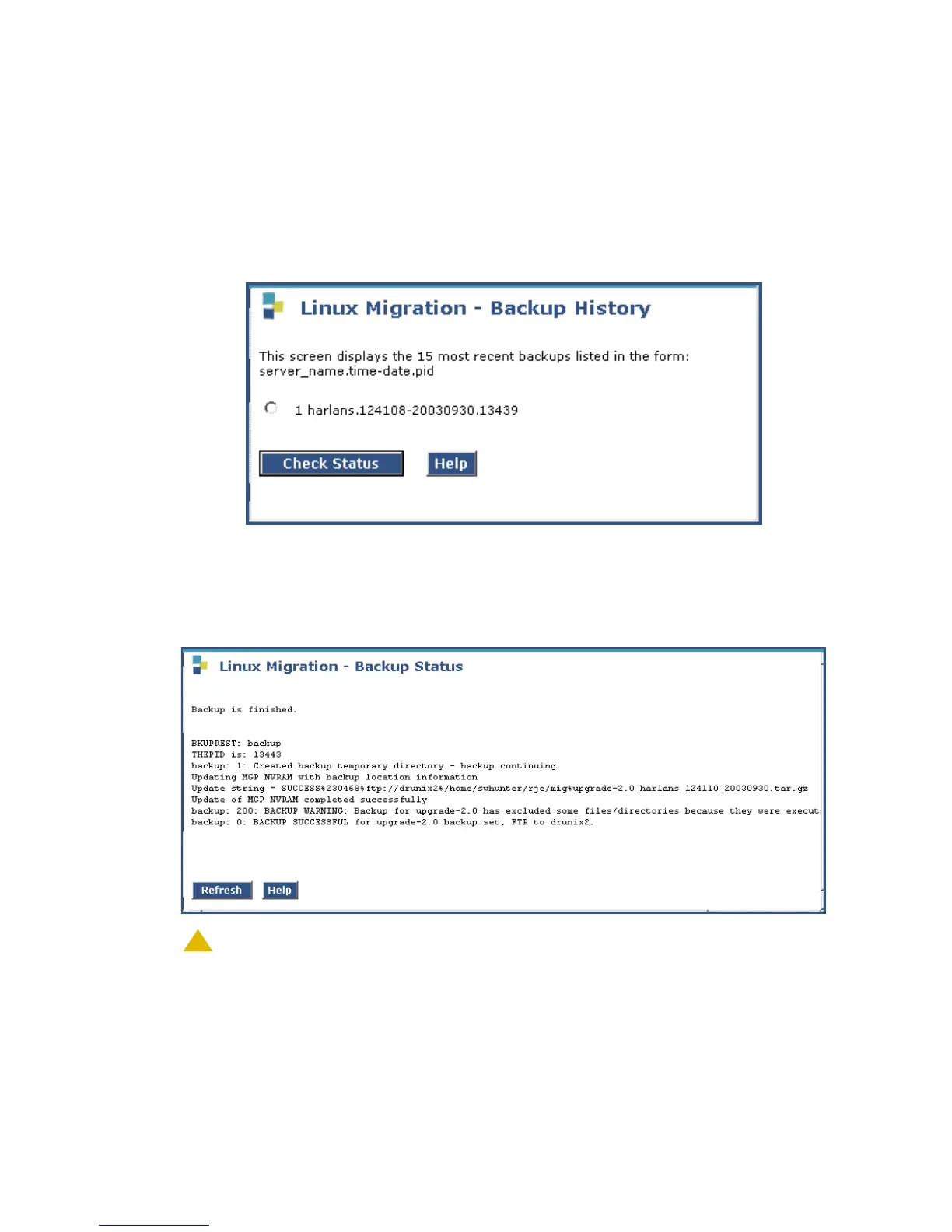 Linux Migration - Backup Status screen