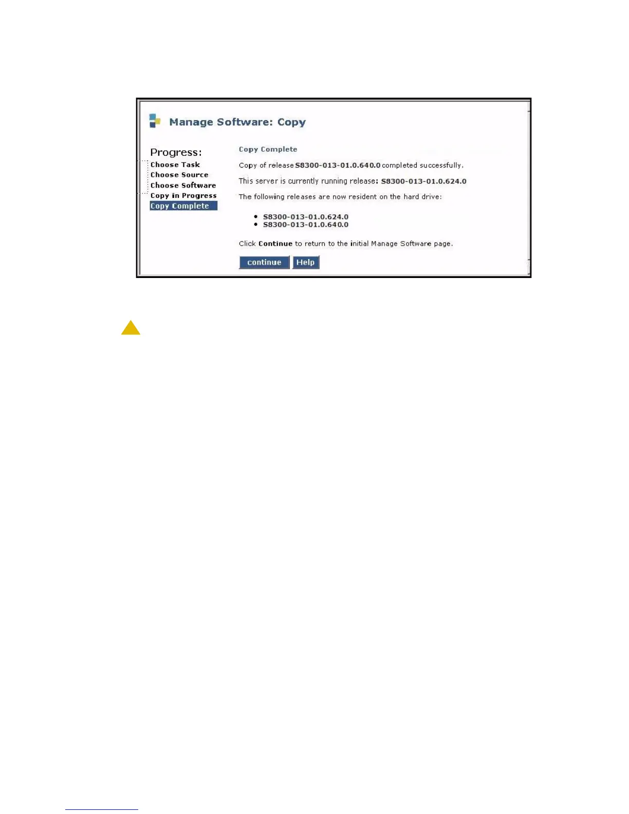 This screen indicates the release just copied, shows the release running on the S8300, and