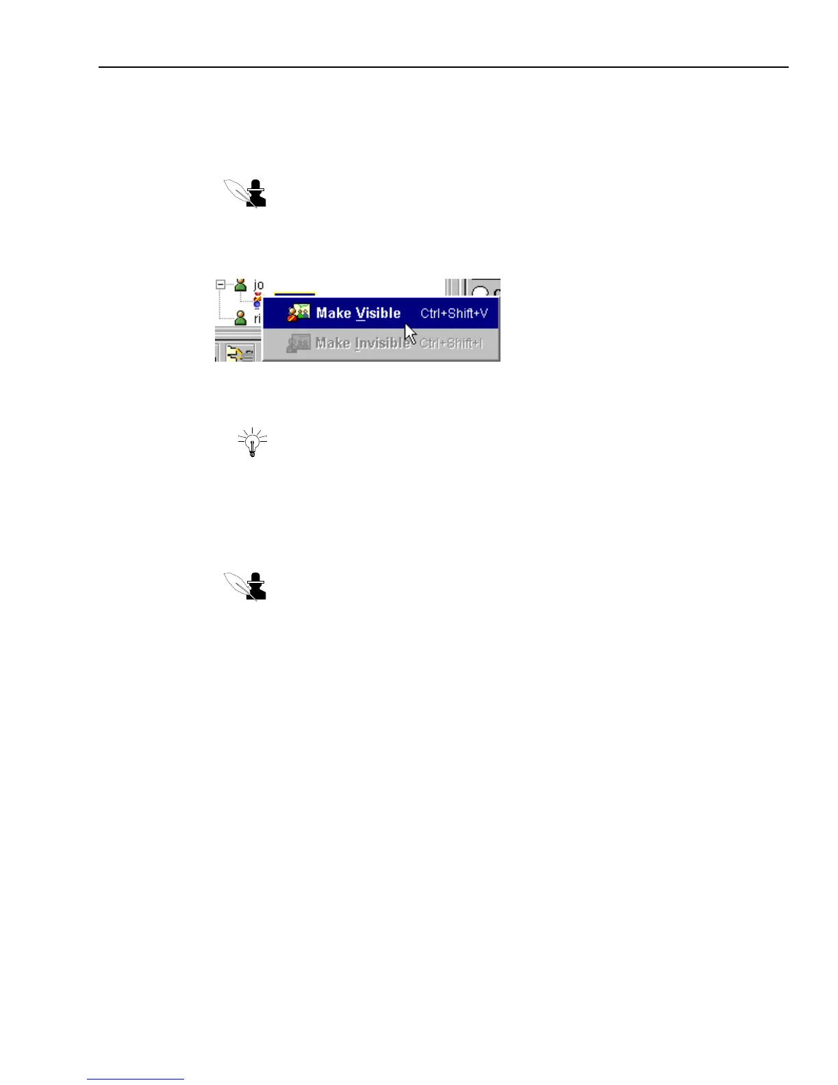 Tip: If you make yourself visible, remember to make yourself invisible again before