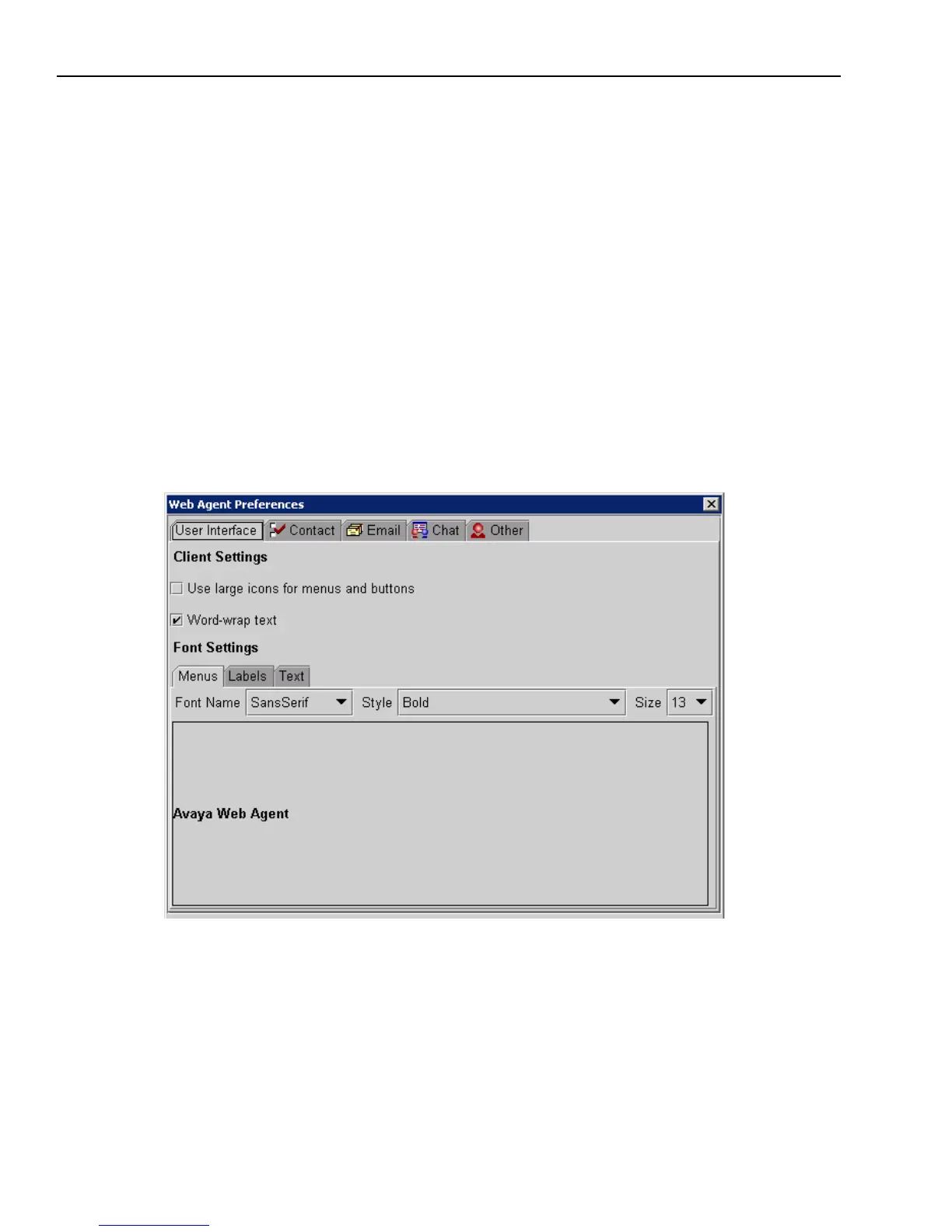 User Interface preferences are related to the display of the Web Agent. The changes you make in