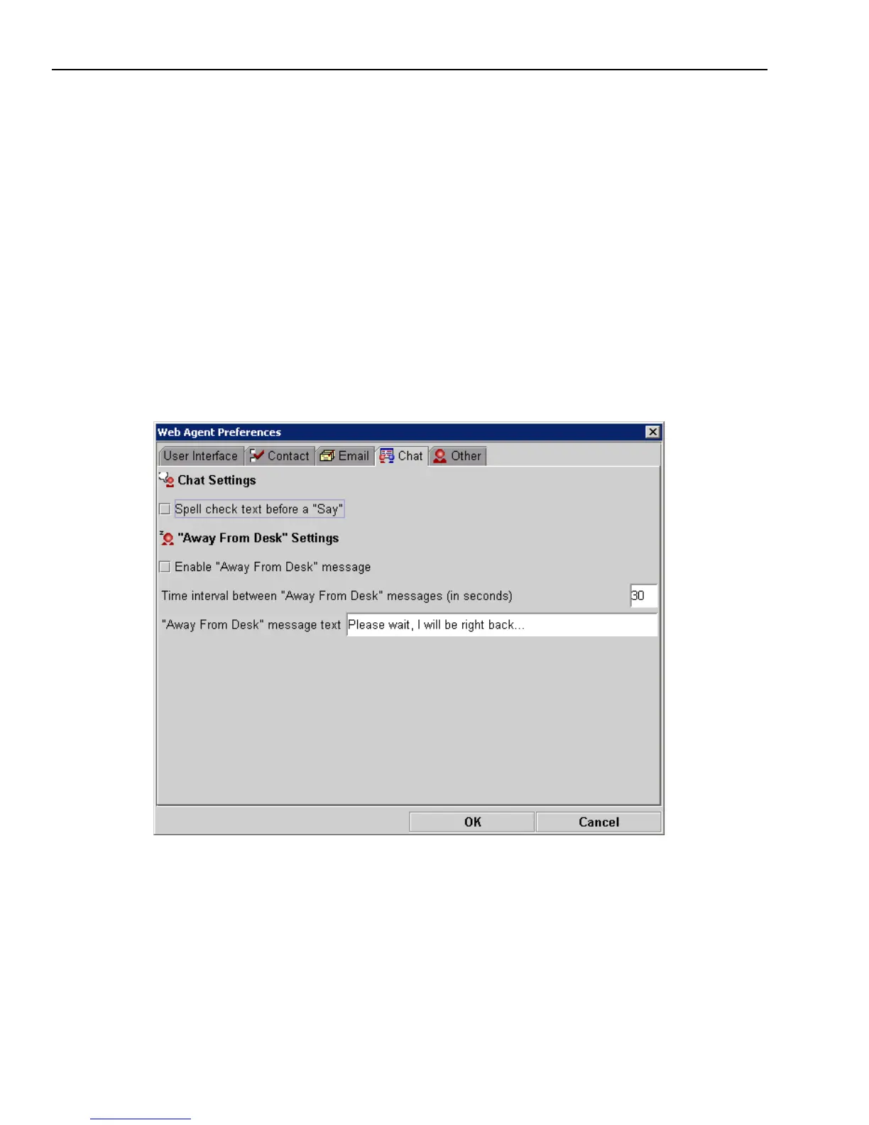 The options in the Chat tab, which apply only to chat sessions, are as follows: