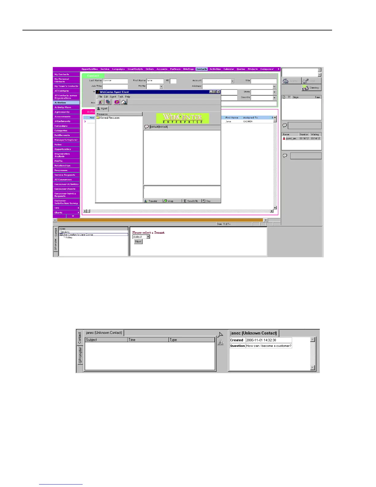 Avaya Agent builds an activity for Jane Connor in Siebel Call Center, as shown in the