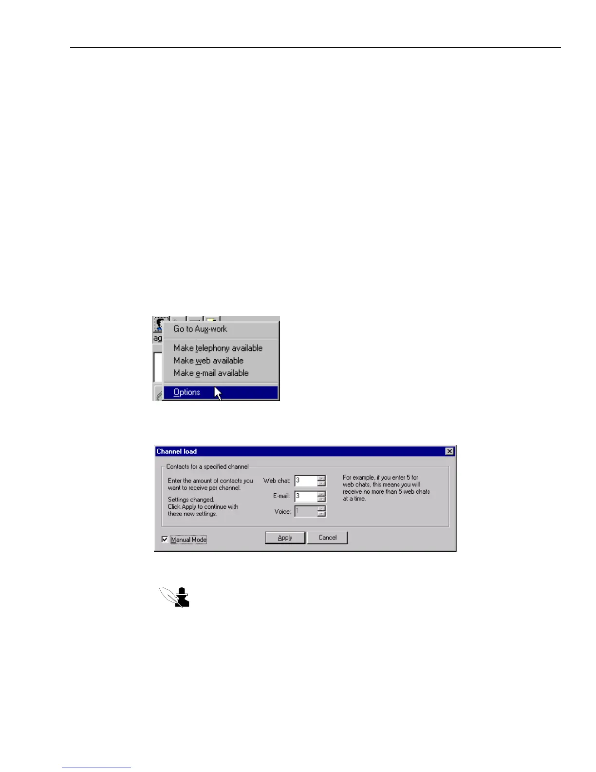 manual mode. If you can select the Manual Mode check box in the Channel Load dialog box, that