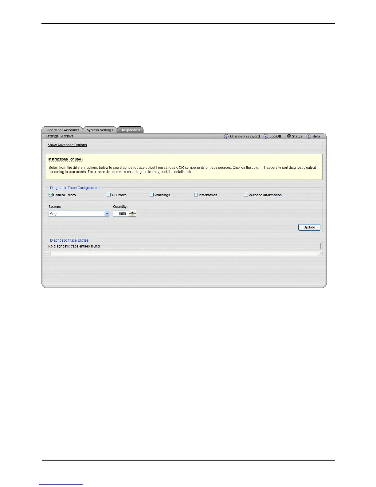 · Diagnostic Trace Settings