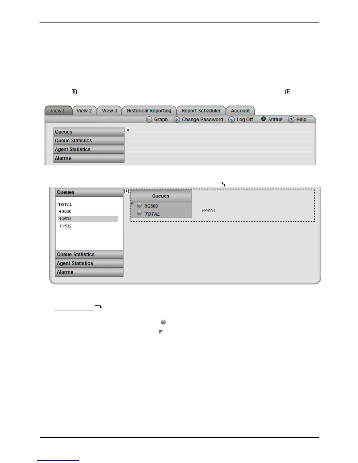 · To add a queue to the view, click Queues. Drag and drop the required queue into the view and when the hatched