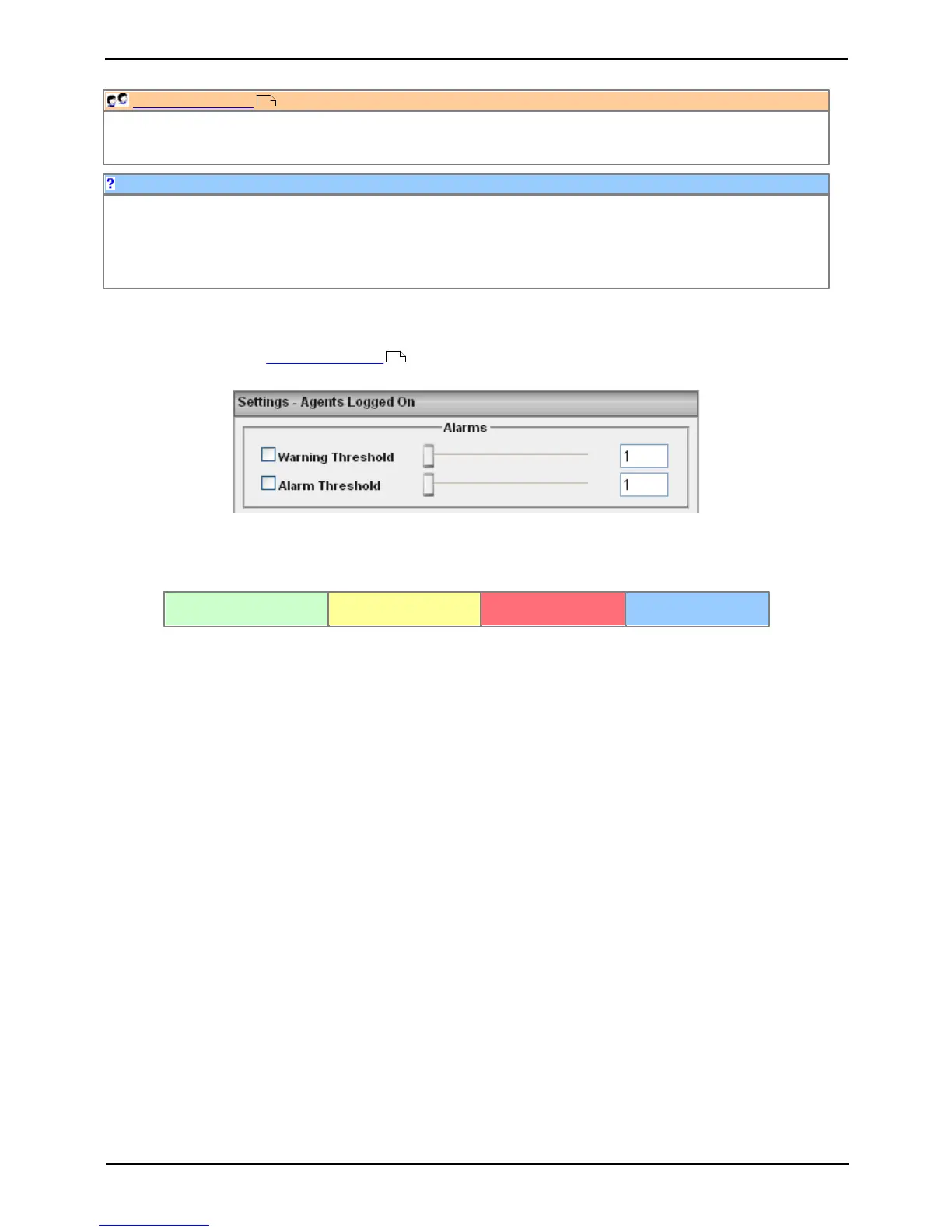 · The alarm and warning settings are applied to all cells in the statistic column. When applied to an agent